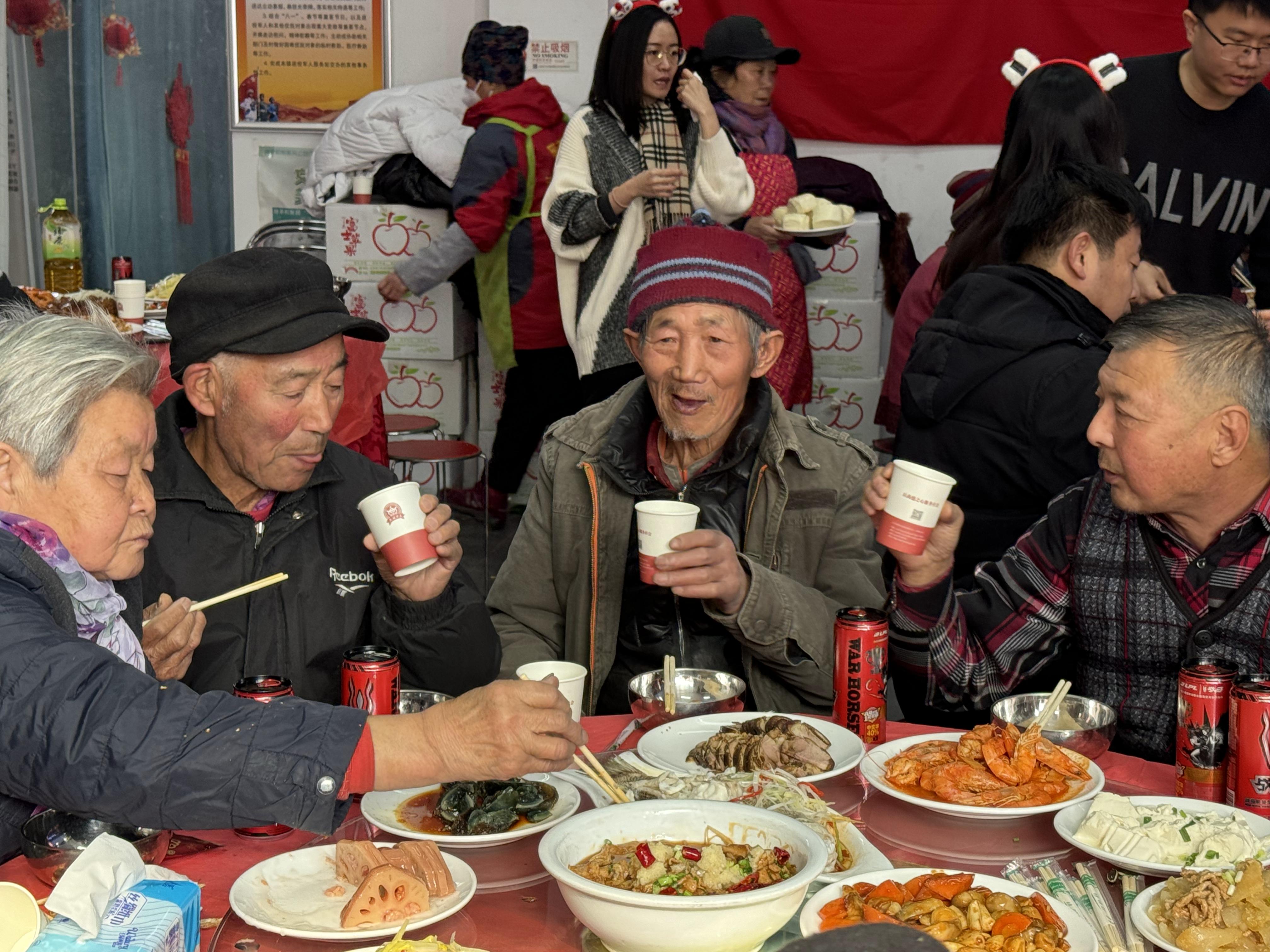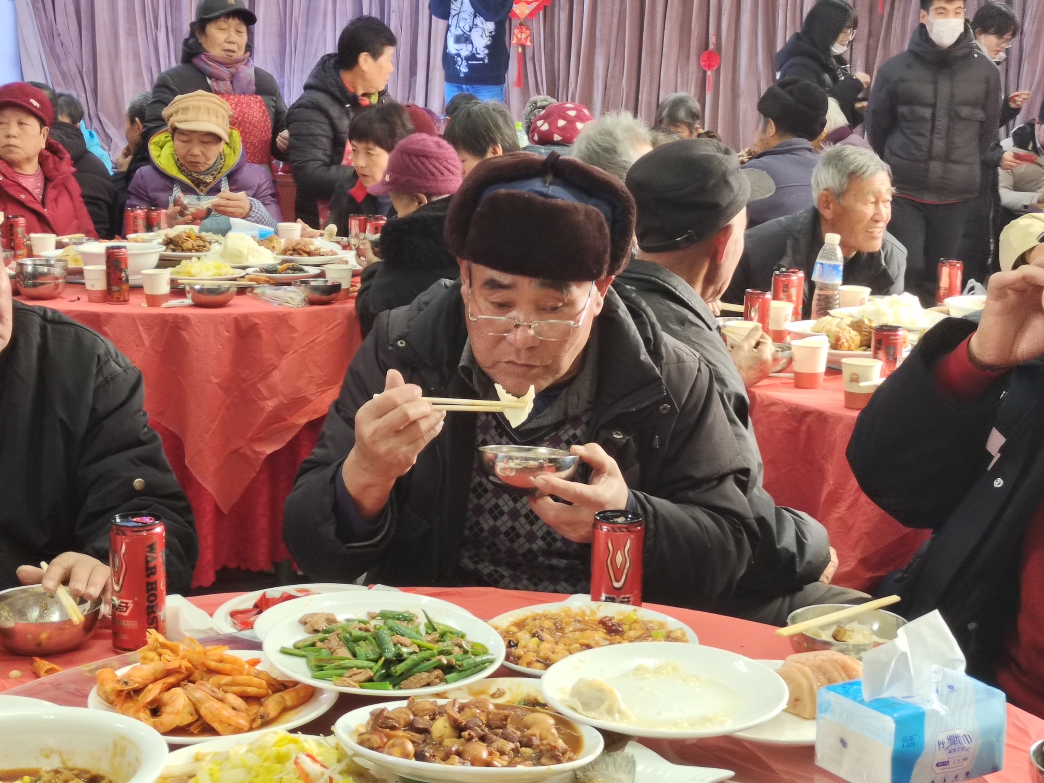 在活动现场,特意请来了专业的厨师,为老人们烹制了一道道色香味俱全的佳肴,糯米藕软绵甜香,湿润绵软;清蒸鲈鱼肉质细腻,鲜嫩可口;四喜丸子金黄圆润,鲜咸酥嫩……老人们围坐在一起,享用着美味的年夜饭,畅谈心声、分享着人生经历,其乐融融,在这里感受到家的温暖。