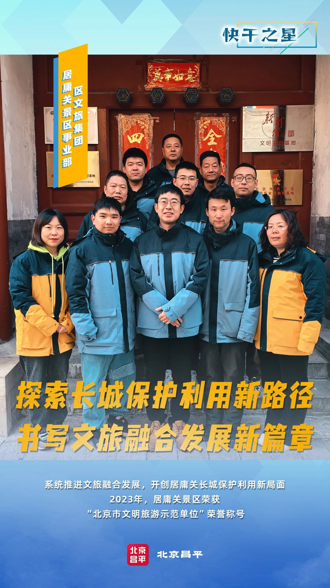 区文旅集团居庸关景区事业部,以赓续中华文脉、弘扬传统文化的高度责任心和使命感,深入探索长城资源活化利用,系统推进文旅融合发展,开创居庸关长城保护利用新局面。创新文旅业态活动,充分发挥“文旅+”融合带动,通过“长城+夜经济”“长城+体育”等模式,创新文旅新业态;积极组织保障2023北京长城文化节、“居庸山月”中秋诗歌晚会系列活动。2023年,居庸关景区荣获“北京市文明旅游示范单位”荣誉称号。