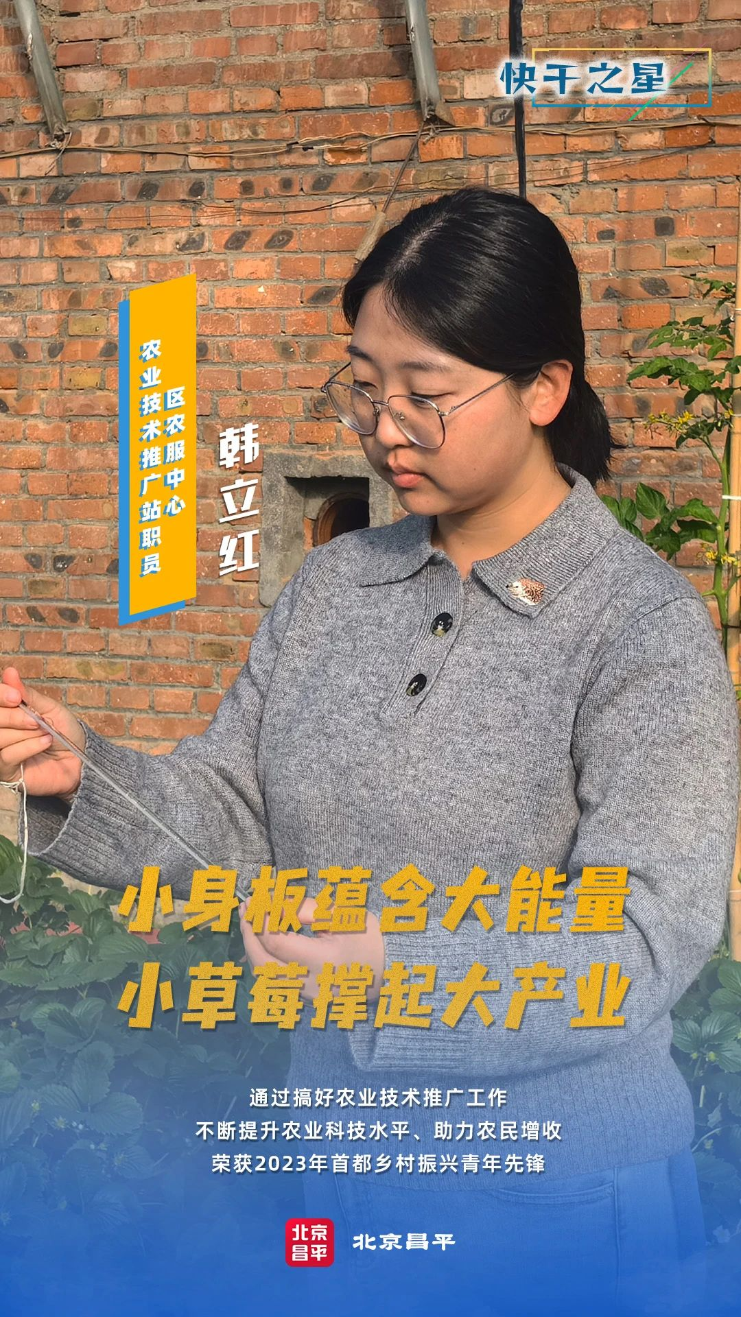 韩立红,中共党员,区农服中心农业技术推广站职员,手握农业技术,心有农业情怀,通过搞好农业技术推广工作,不断提升农业科技水平、助力农民增收,荣获2023年首都乡村振兴青年先锋。发挥青年党员敢奋斗勇担当的先锋模范作用,每年下乡200余天,日常撰写技术指导信息70余条,工作日志100余条,在作物生长的关键时期开展好技术指导。聚焦帮助农民更好学习草莓套种栽培技术,不断创新技术推广形式,通过技术推广更新,种植户每栋日光温室可增加产值1000-8000元不等,切实助力增产增收。
