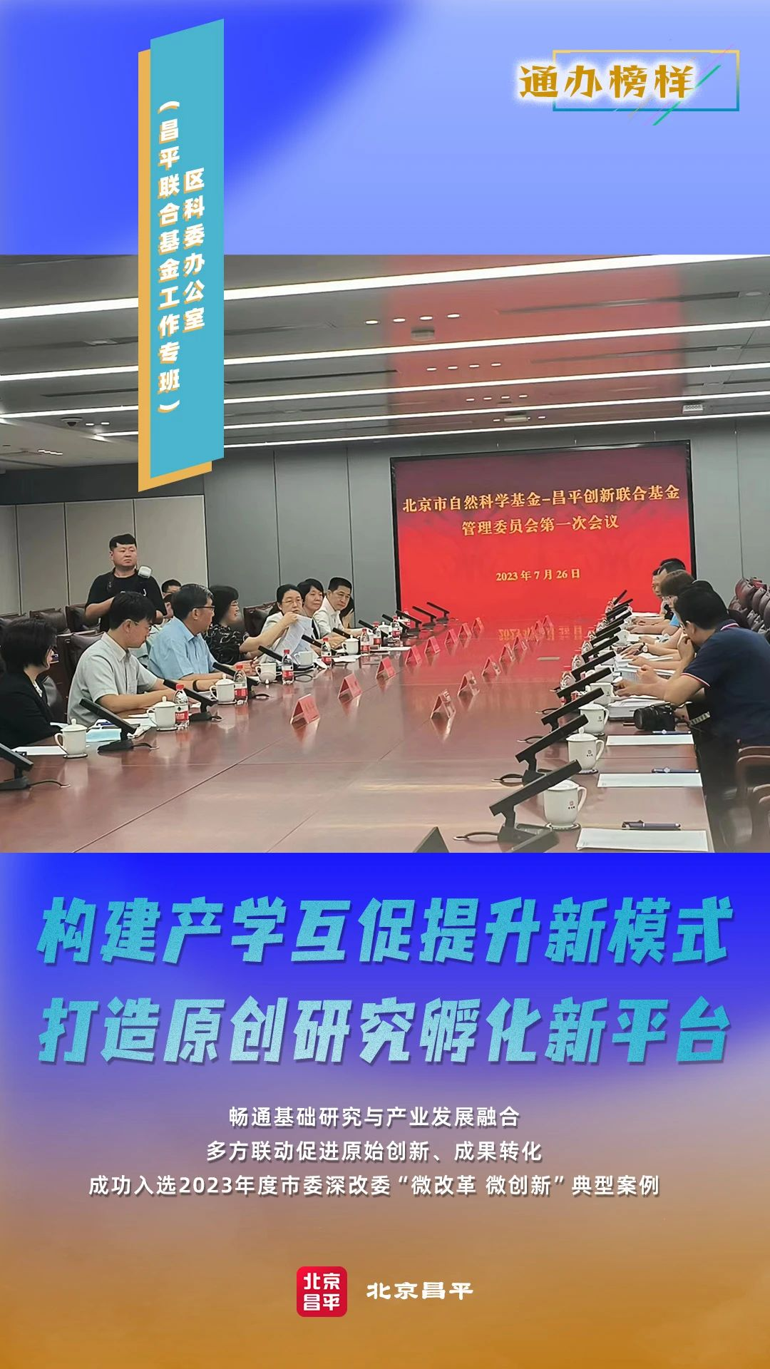 区科委办公室(昌平联合基金工作专班),积极打造“政产学研用”新模式,畅通基础研究与产业发展融合,多方联动促进原始创新、成果转化,成功入选2023年度市委深改委“微改革 微创新”典型案例。打造企业、高校院所合作平台,引导百济神州、万泰生物等出资方立足实际提出需求,邀请清华大学、北京大学等单位30余位学术专家研究论证,源头实现产学研用紧密结合。