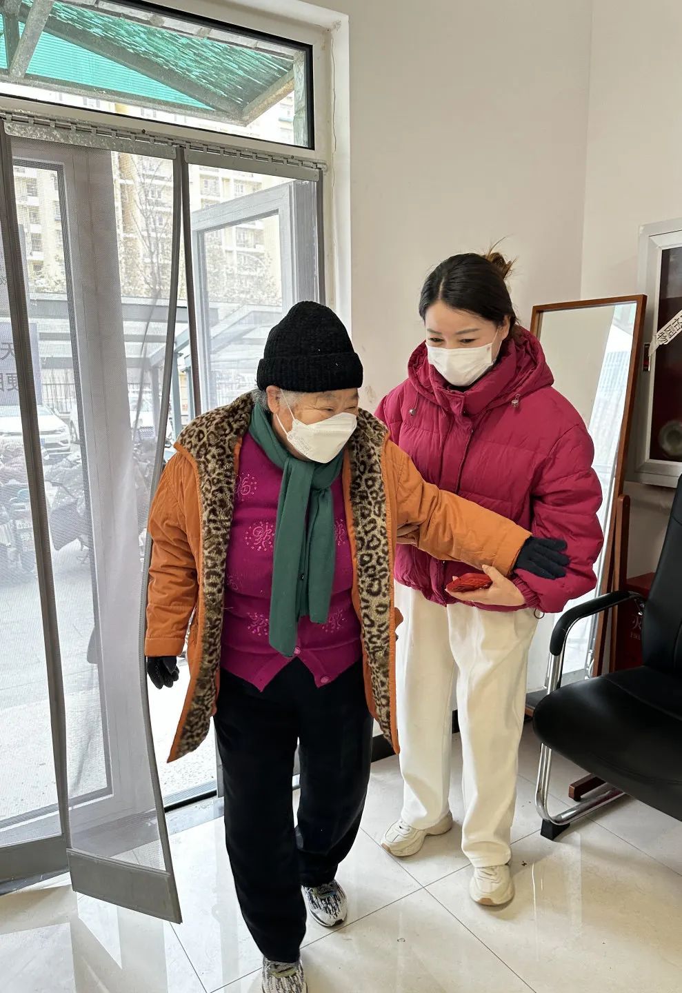 “阿姨您慢点走,这边来……”