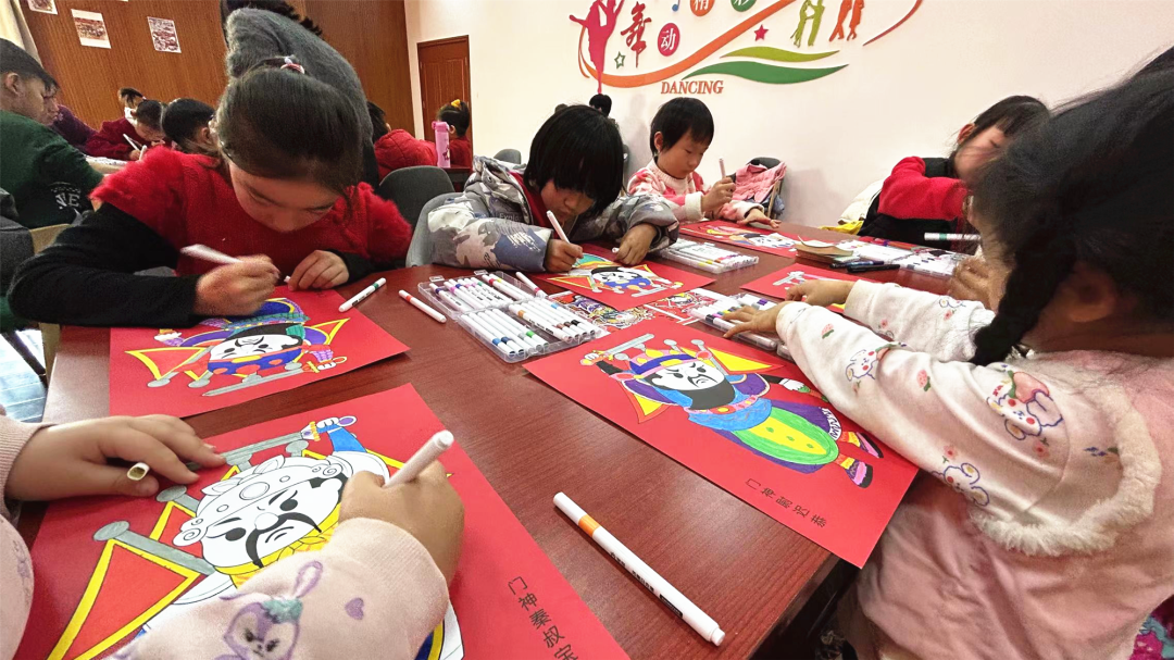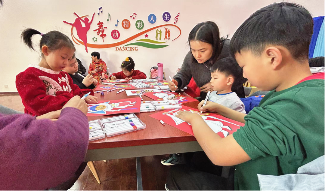随后,志愿者为每个家庭发放了画纸、彩笔,鼓励大家充分发挥想象,通过巧妙的色彩搭配,将自己眼中的美好生活和对新一年的美好祝愿绘画在纸上,使家长和孩子相互合作,画出自己的独特年画,体验传统艺术之美。
