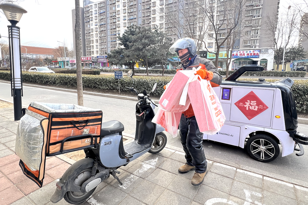 在顺义街头,一辆辆忙碌的自动配送车不时驶过,骑手+自动配送车的组合成为春节期间的一道风景线。记者从区经信局获悉,在顺义常态化运行的美团和毫末智行自动配送车,春节期间不打烊,持续为顺义市民提供配送服务。