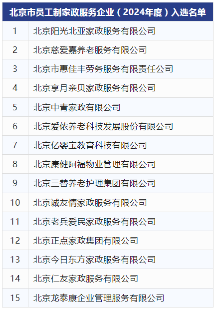 2024年度北京市员工制家政服务企业