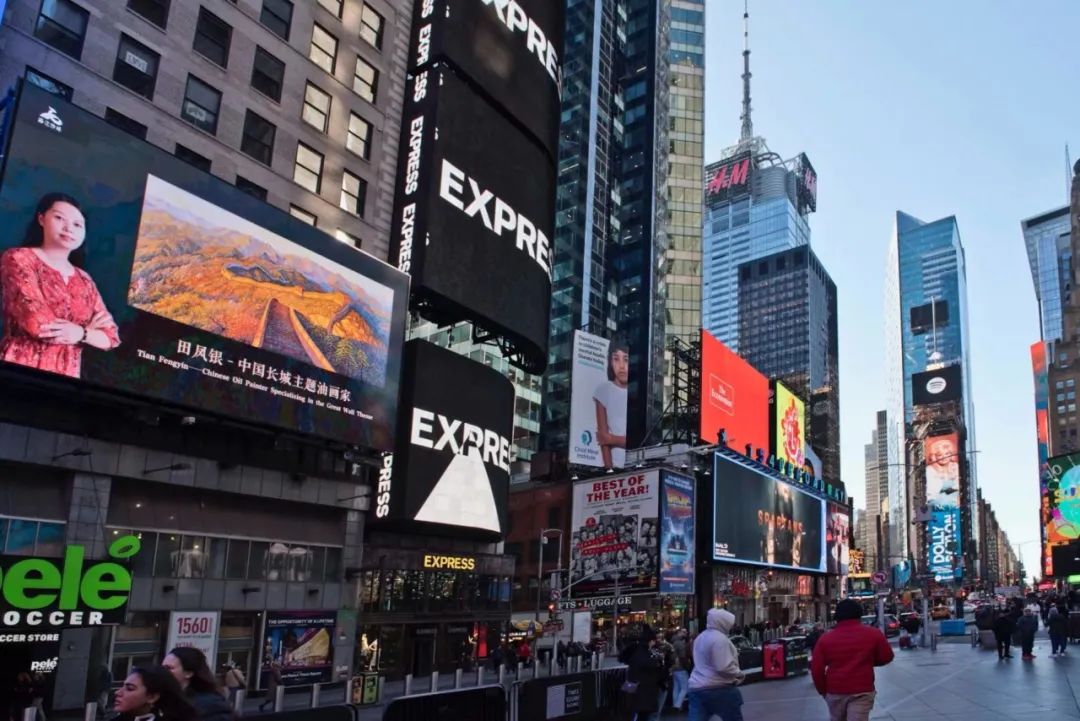 2024年2月5日—2月7日,早晨6点至夜间24点连续播放,每天20次,每次5秒。在纽约时代广场大屏幕128屏,播放田凤银长城油画作品《长城礼赞》。