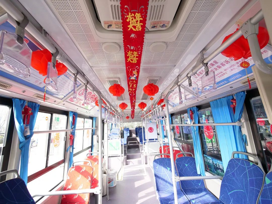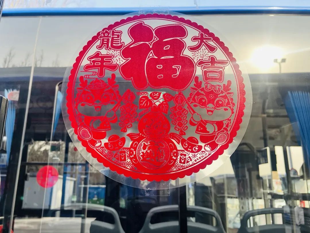 记者在北京骏马客运有限公司看到,独具特色的公交车上线,红色的灯笼、吉祥的龙元素、喜庆的福字、温馨的祝福语,处处透露着浓浓的年味儿。乘客陈女士说:“一上车就能感受到喜庆的氛围,仿佛离家更近了一步。”