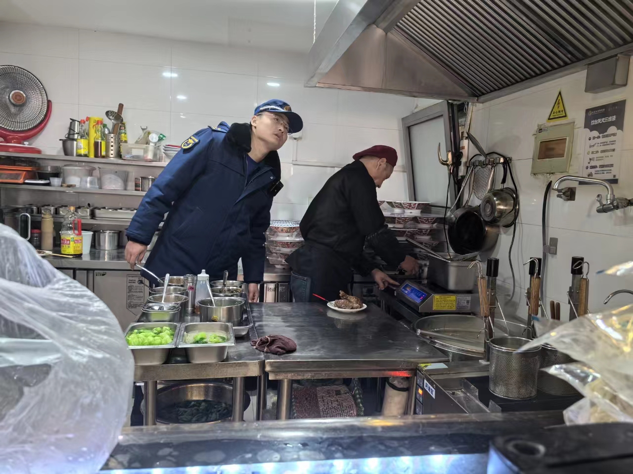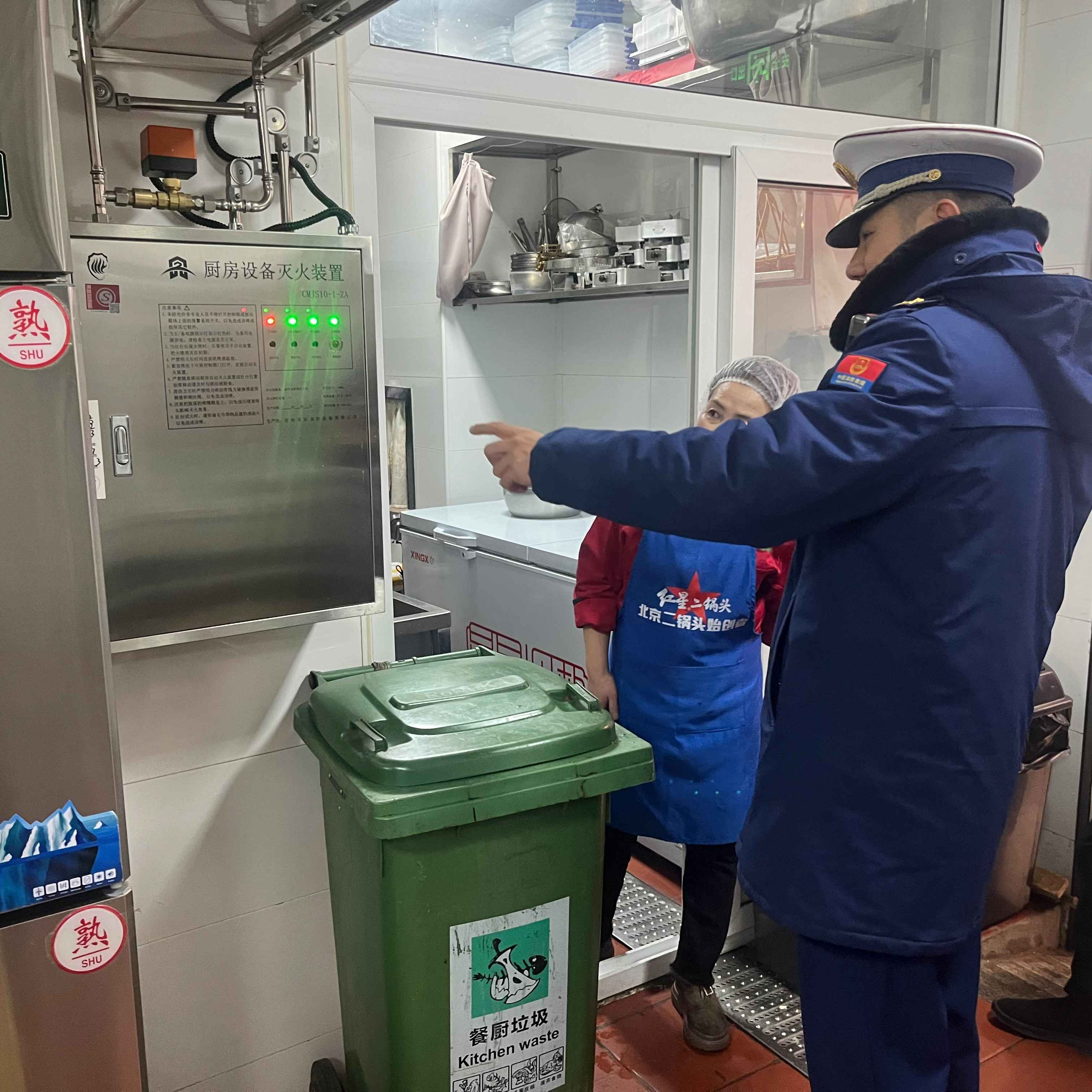 随着春节假期的结束,各类生产经营企业陆续复工复产,为有效防范化解火灾事故风险,2月18日,石景山消防深入辖区对复工复产的九小场所开展消防安全检查。在对广宁街道秀府时代餐厅进行消防安全检查时,发现后厨杂物占用疏散通道和遮挡消火栓等问题,存在消防安全隐患。防火监督员张凯在告知其隐患问题后,该单位负责人积极配合整改。