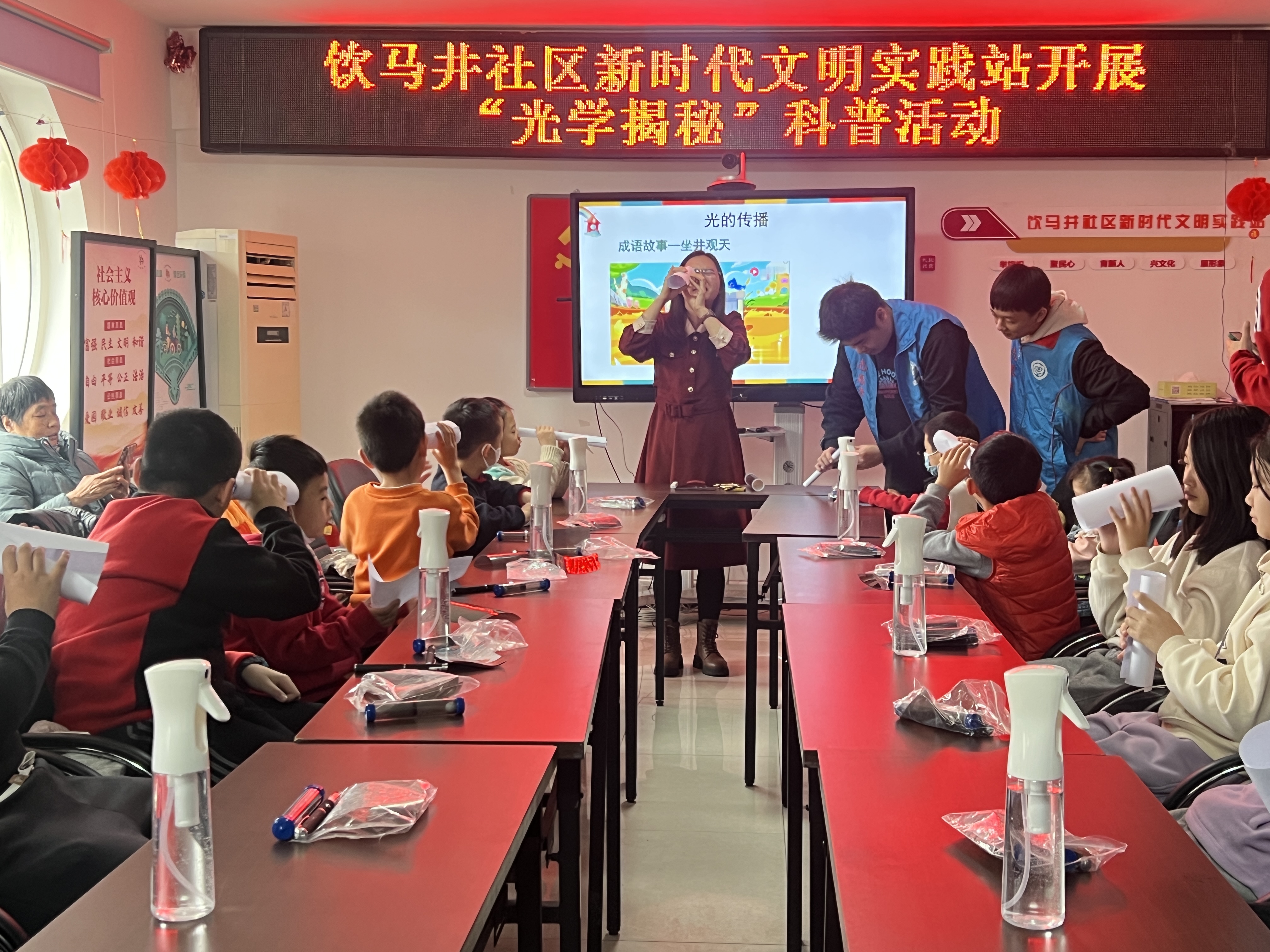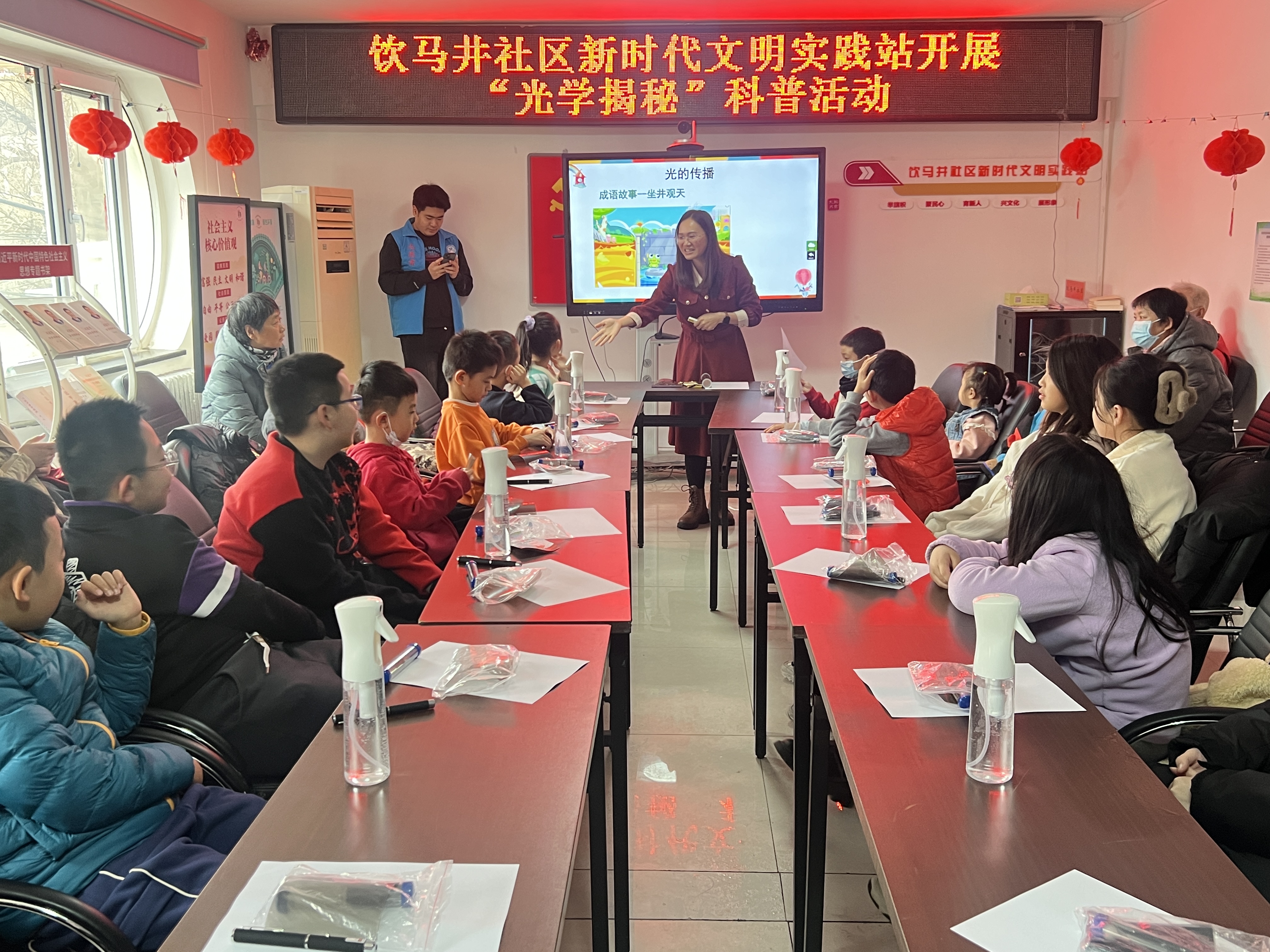 活动现场,苏丹老师通过生动有趣的讲解,为在场的青少年们揭示了光学的奥秘。苏丹老师以生动形象的语言,深入浅出地讲解了光的直线传播、光的偏振等基本光学原理,并以实例为切入点,让大家了解到光学在日常生活中的广泛应用,如太阳能、激光笔等。苏丹老师还结合成语故事,让同学们在学习科学知识的同时感悟生活的道理。同时,现场还通过实验演示,让大家亲身体验到光的神奇魅力,激发了青少年们对光学知识的探求欲望。