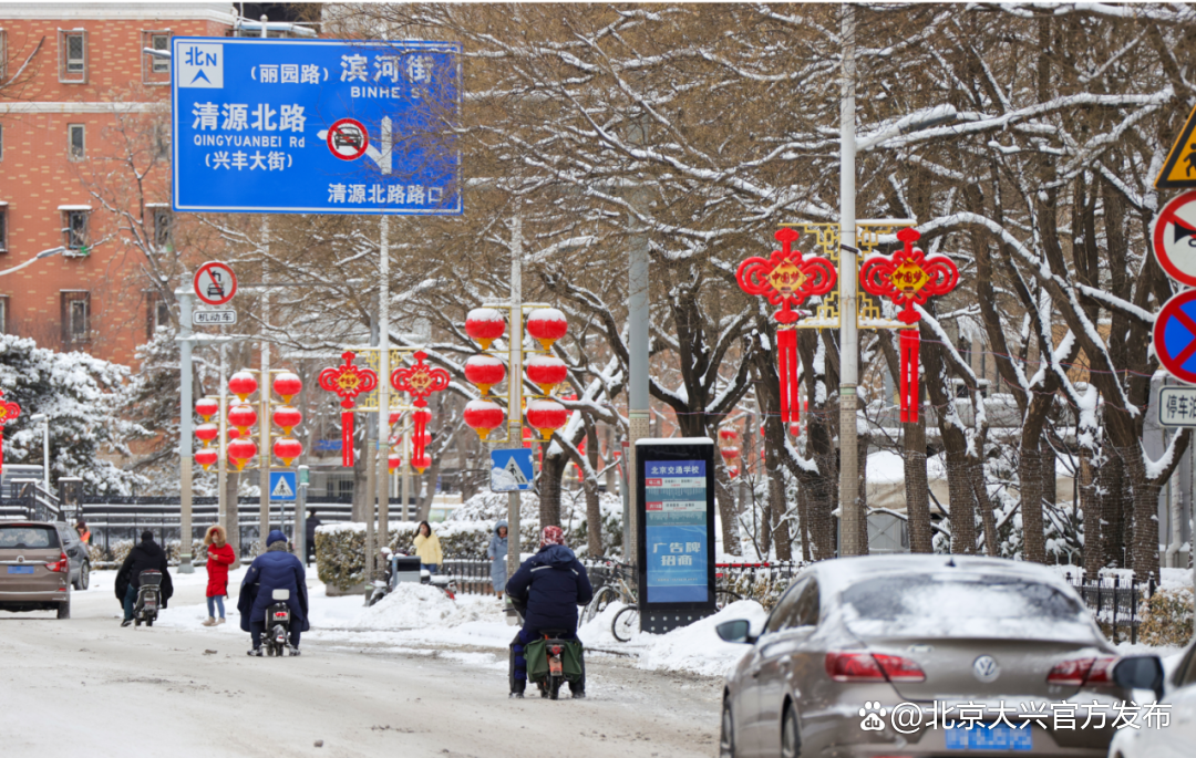 2月20日晚,北京城区迎来龙年首场,绵绵的白装点着清源街道的各个角落,给民带来了一份春日惊喜。