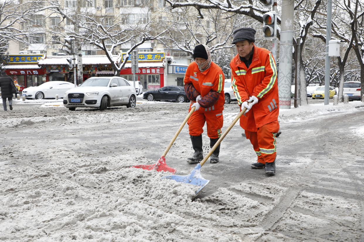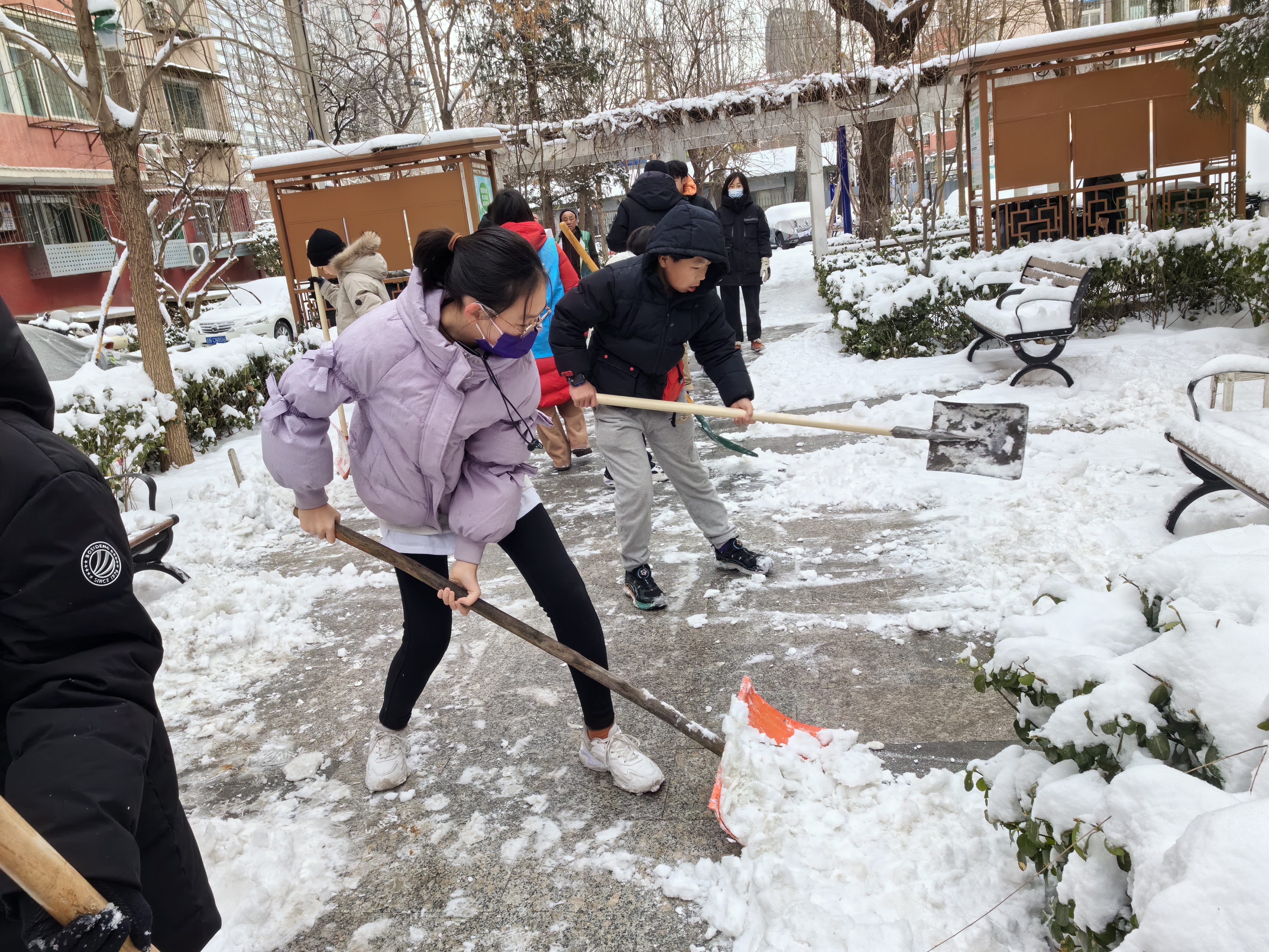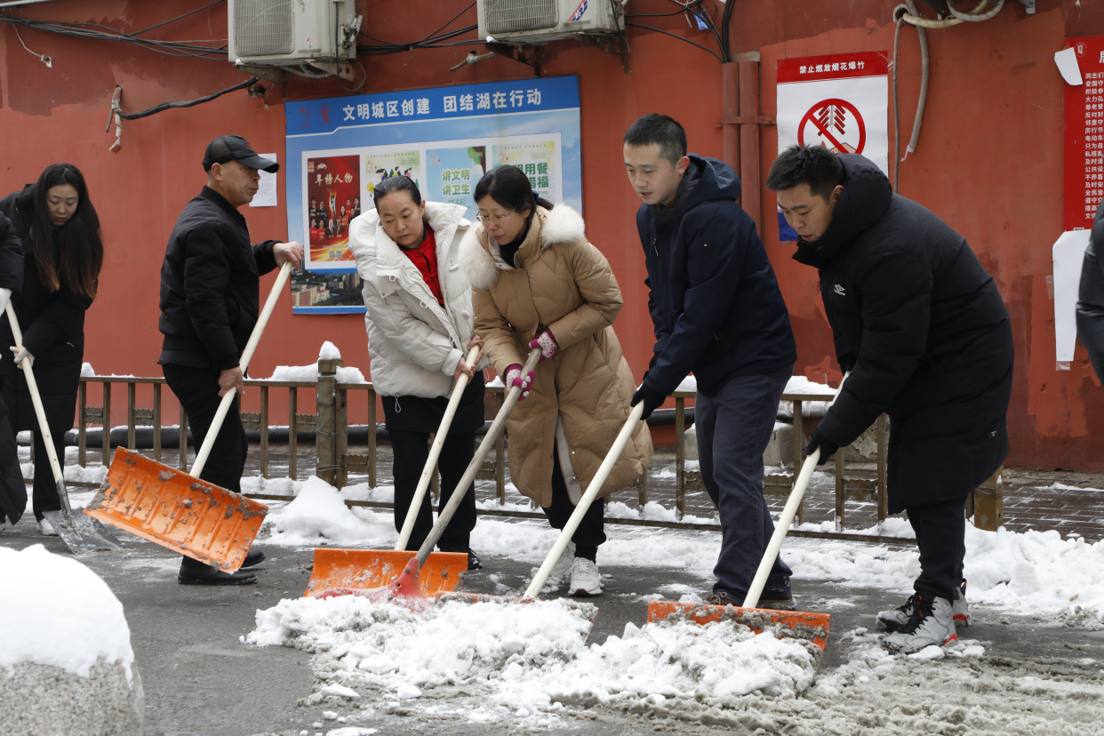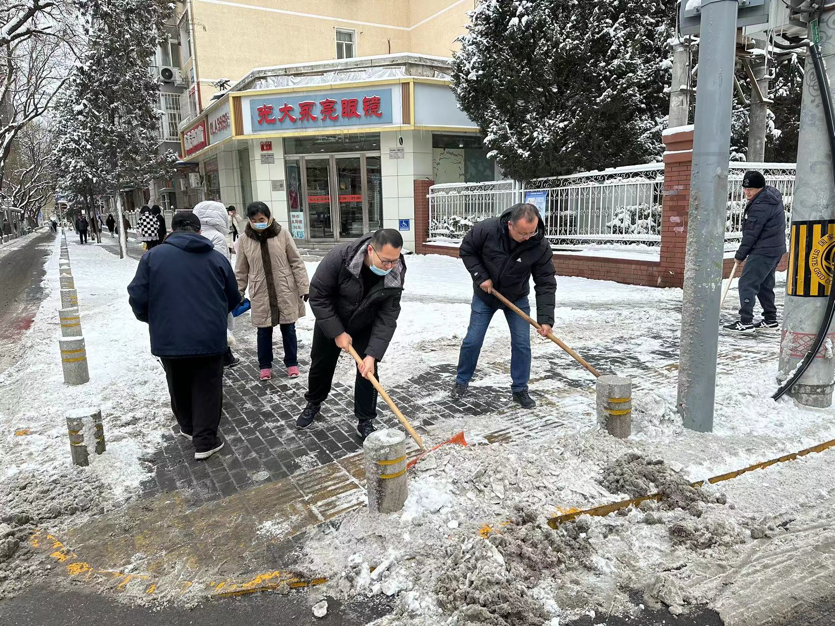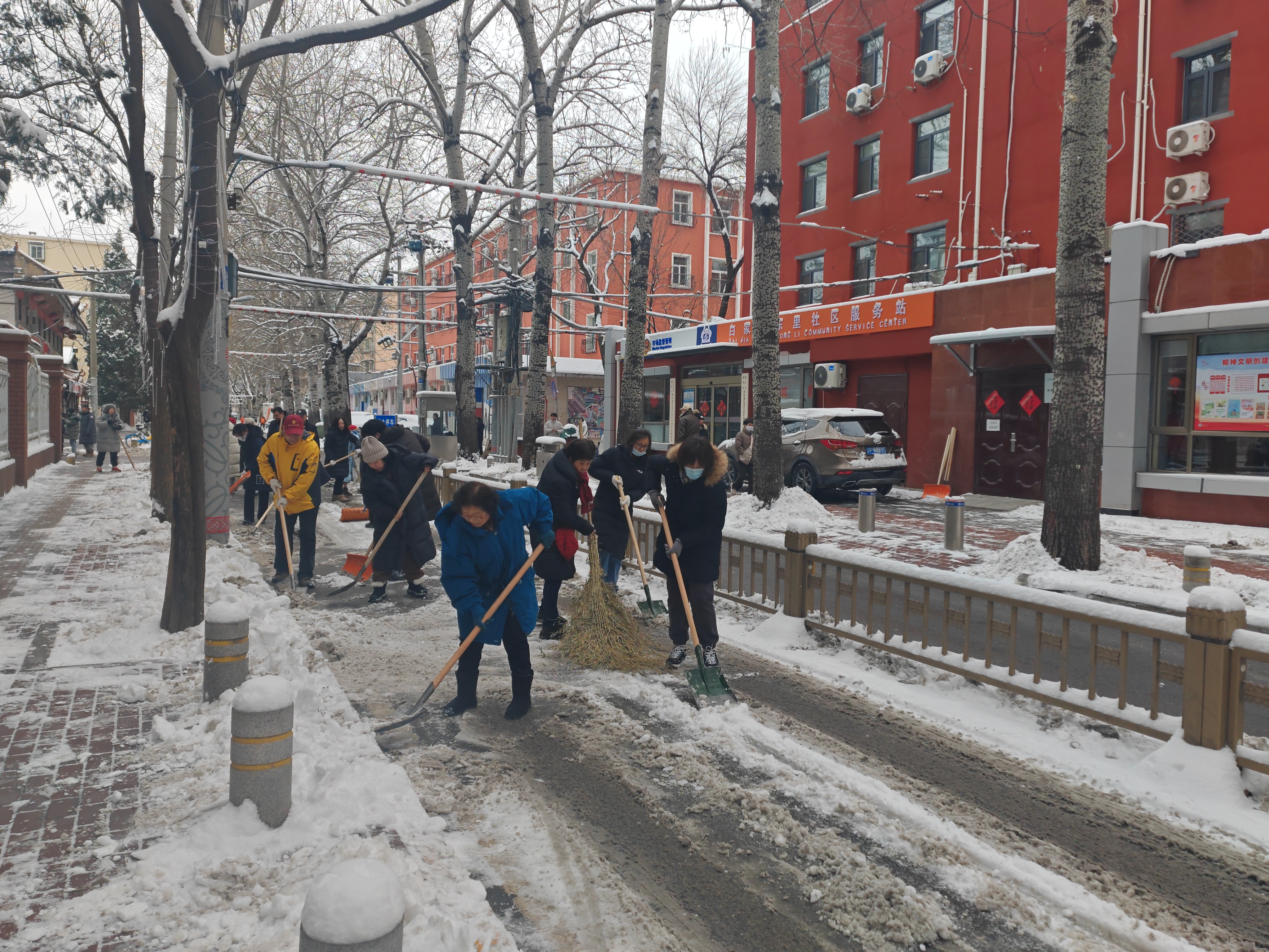 街道党员干部、新疆挂职干部主动作为,下沉包片社区,与社区工作者一同清扫主次干道积雪。