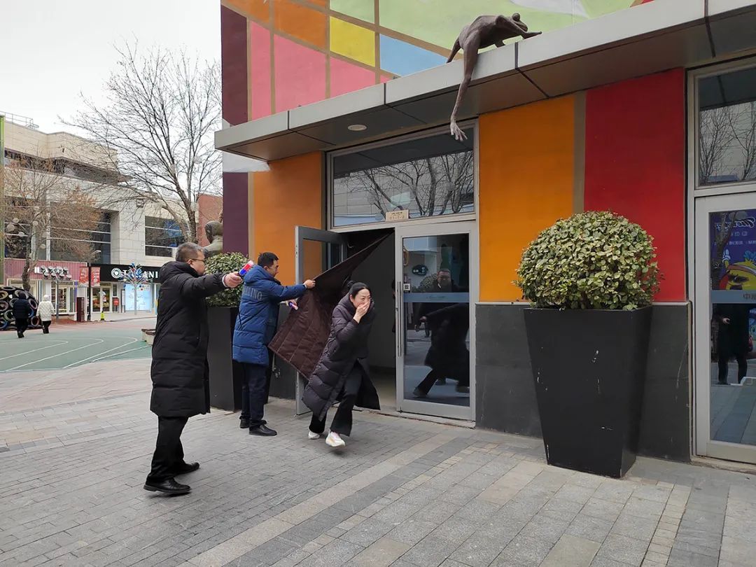 此次消防演练模拟超市内起火,超市工作人员和顾客有序撤离的全过程。9时,中粮·祥云小镇地下超市刚刚开门营业,超市冷库突然冒烟,随后烟雾扩散至整个库房并向其他区域蔓延……这是消防演练的现场设置,也是演练正式开始的信号。