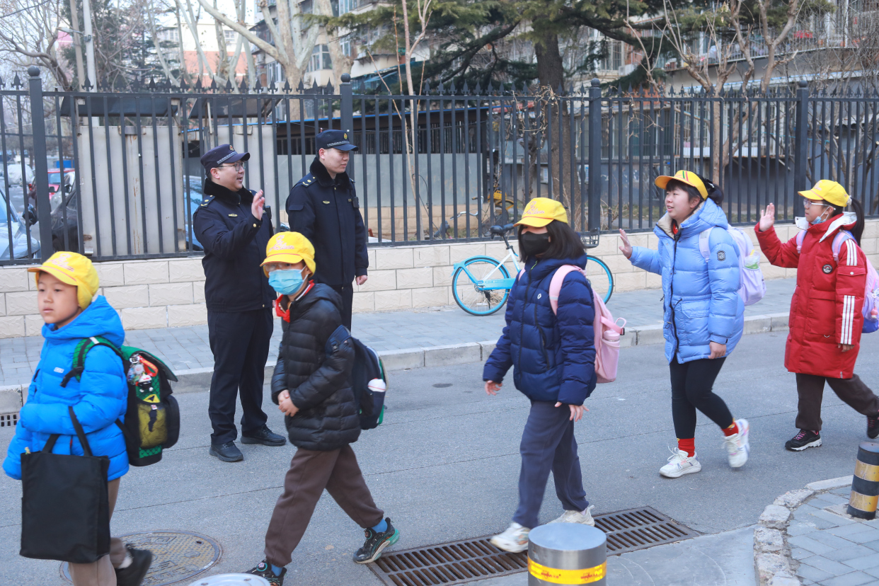 为确保学校师生安全开学,西城区城管执法局也提早按下“护学键”,指导各街道综合行政执法队结合辖区学校实际,通过定点值守、动态巡查等方法,筑牢校园周边环境秩序“防火墙”,齐心协力站好“护学岗”。