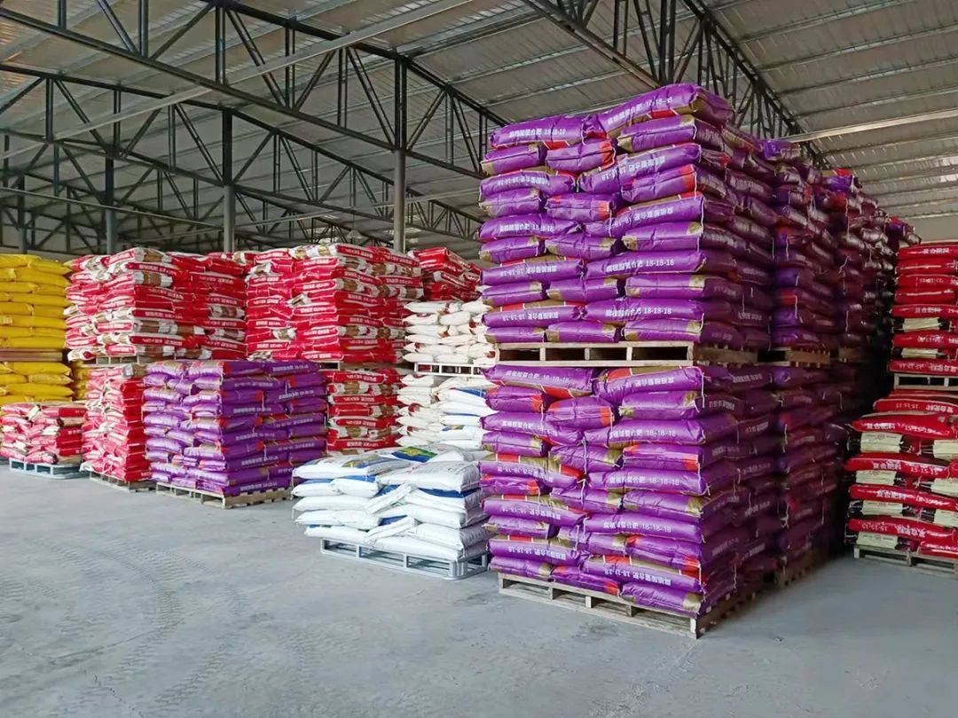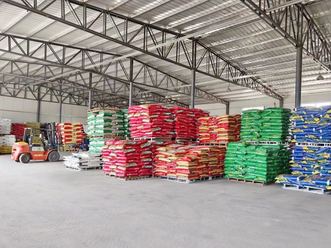 农资龙头企业储备的农资商品码放整齐、数量充足。