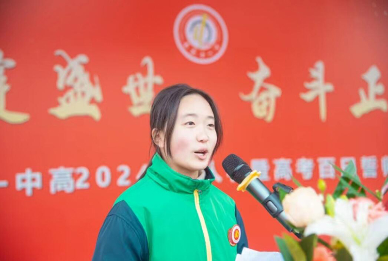 高三学生代表李可表达了对父母养育之恩和老师教诲之恩的感激之情,并立志在接下来的100天里,以更加严格的标准要求自己,全力以赴,夺取高考的胜利,实现自己的成人誓言和社会责任。