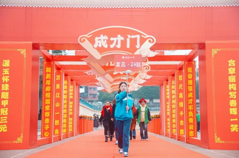 宣誓结束后,孩子们在父母和老师的引领下昂首阔步地穿过“成人门”,踏上崭新的人生旅程。