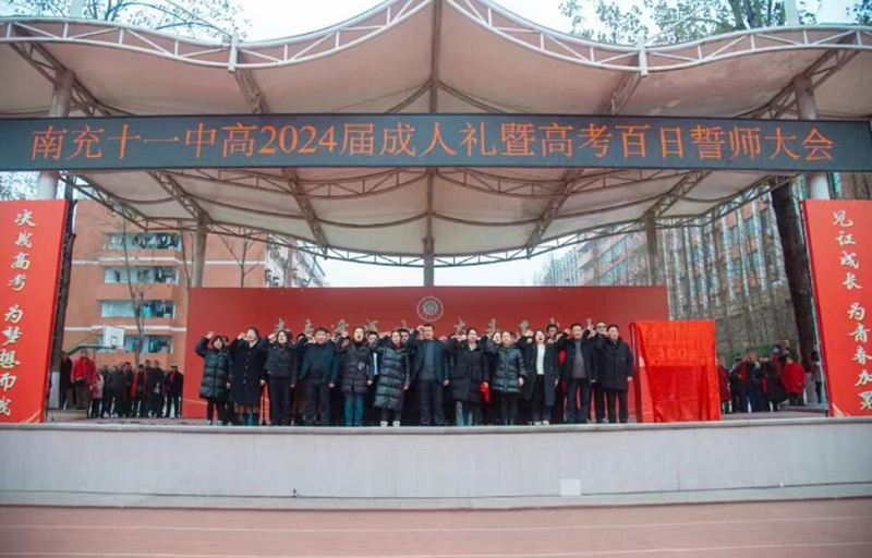 为进一步增强学生成人意识,明确社会责任,培养爱国情怀,激发学子们珍惜青春、发奋学习的热忱。2月28日,南充市第十一中学校隆重举行了以“青春逢盛世、奋斗正当时”为主题的高2024届成人礼暨高考百日誓师大会。