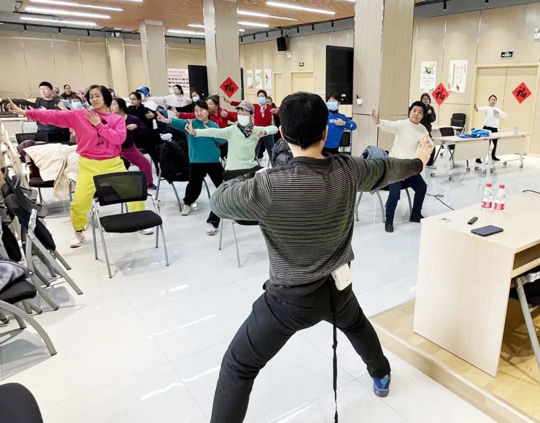 春暖花开,万物复苏,党群服务中心的中医养生八段锦健身系列课程正式开启,35位地区居民参加了第一期活动。