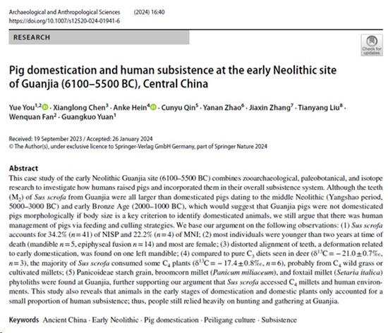 近日,历史学院科技考古团队联合国内外多家考古机构以首都师范大学为第一单位,在国际重要学术期刊《考古学与人类学科学》(Archaeological and Anthropological Sciences, SCIE/SSCI/A&HCI同时收录)在线发表了袁广阔教授团队近年来多学科交叉科技考古的研究成果,探讨距今约8000年的人类生业经济及中国古代家猪驯化早期阶段的途径。