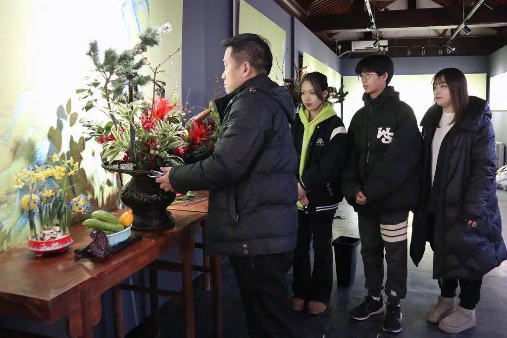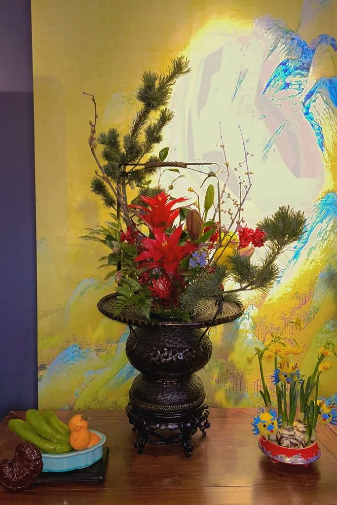 比赛以“岁朝插花”为主题,要求参赛选手将梅花、蜡梅与其他时令花卉相结合,使用中国传统插花技法进行展示。