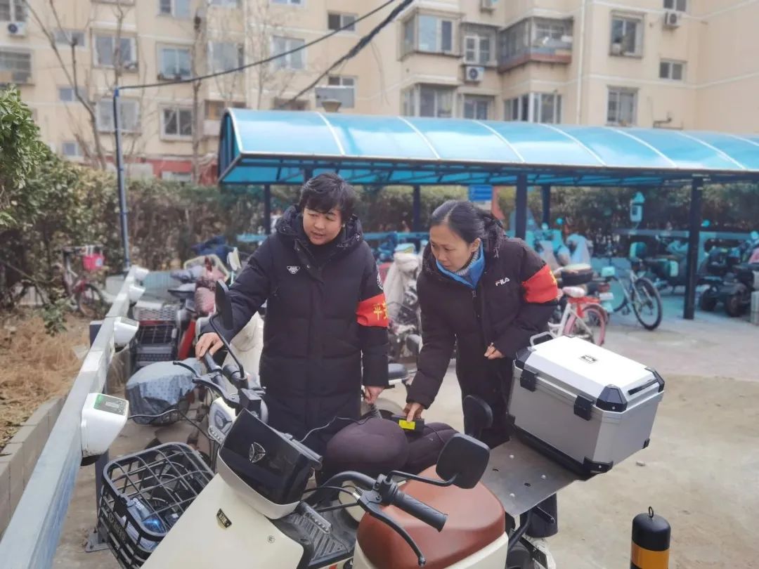 在滨河西里南区社区,社工与物业人员在每日早晚高峰时期常态化开展安全巡查,逐一查看电动自行车充电设施破损、充电线路乱拉乱接、违规上楼入户等情况。