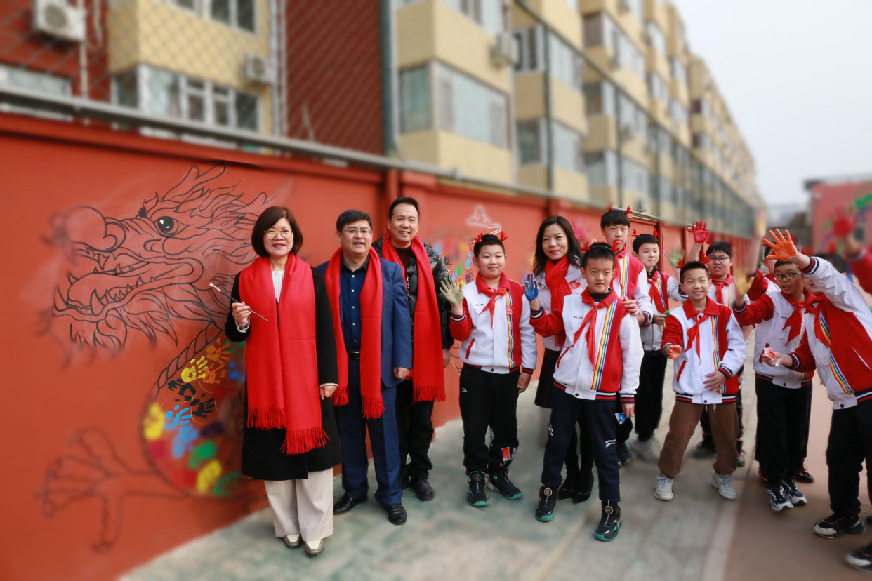 2月27日,学校邀请到经开区社会事业党委书记、社会事业局局长张建荣,社会事业局党群工作处处长裴晓峰,共同见证新校牌揭牌仪式。随后,张建荣到开学节现场、画龙点睛,并激励孩子们从小要有龙一样坚毅、顽强、百折不挠的奋进精神,好好读书,奋发有为。