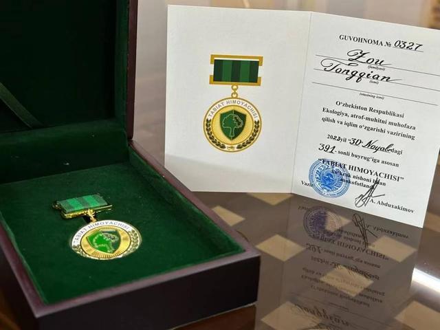 “大自然捍卫者”徽章由乌兹别克斯坦共和国政府于2022年8月10日起设置,是乌兹别克斯坦共和国生态环境领域最高荣誉。