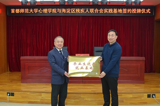 此次签约授牌仪式开启了双方在科研、人才培养、实践应用等领域全方位合作的序幕,将为心理学院学生提供更广的实践平台、更丰富的实践项目,有助于强化海淀区残联人才队伍建设,积极推动残疾人心理康复服务领域研究成果落地应用,共同推动双方事业的高质量发展,为首都发展和社会进步注入新动能!