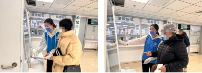 在丰台医院,医院团委根据大学生们所学的专业性质,为6名同学协调到相关专业实践岗,将24名同学安排在不同的志愿服务岗位。同时在正式上岗前,对每一名同学都需要进行了专业人员指导的试岗培训。经过培训,同学们开展了门诊导医、协助挂号、问卷调查、残障帮扶、爱老敬老、安全提醒、维持秩序和戒烟宣教等志愿服务,他们的亲和力和耐心服务获得了患者、医务人员和志愿者叔叔阿姨的一致好评。