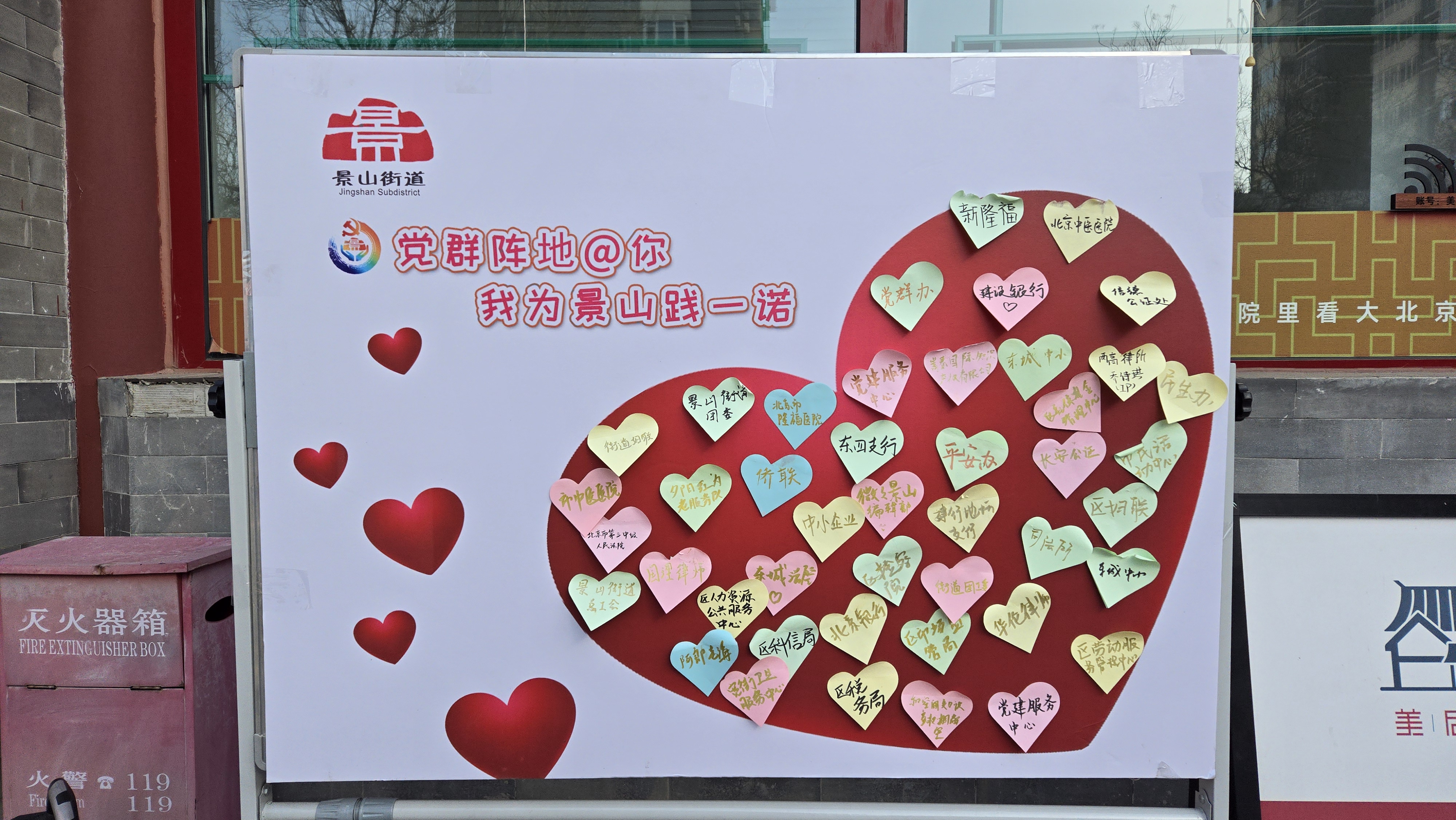 活动现场,一张贴满爱心便利贴的“我为景山践一诺”展板吸引了众多居民的目光。40余家地区单位在此庄重地写下他们的名字,承诺2024年积极参与街道“点亮微心愿”活动,为地区群众提供力所能及的帮助,以实际行动践行党的宗旨,诠释对景山地区的热爱和责任。