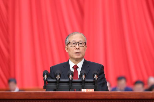 ↑受全国人大常委会委托,全国人大常委会副委员长李鸿忠作关于国务院组织法修订草案的说明。