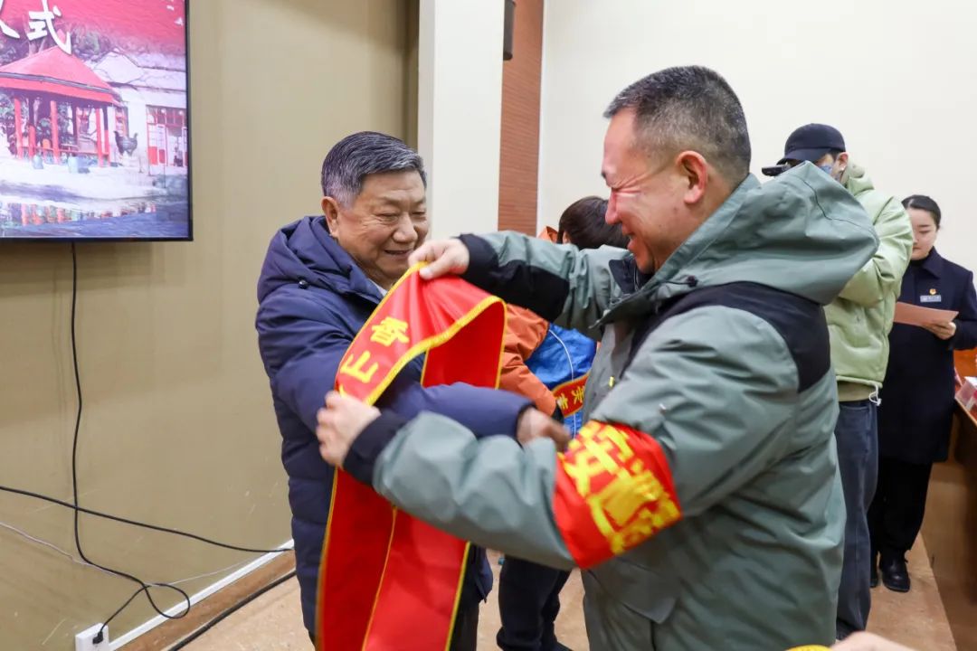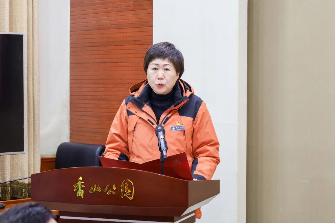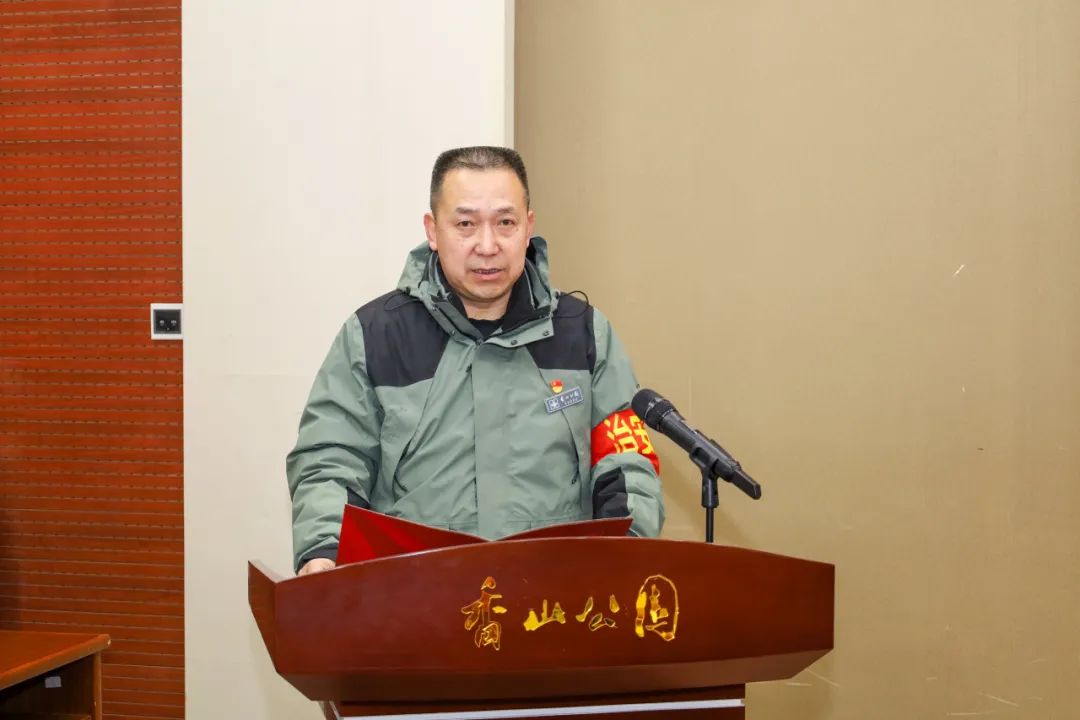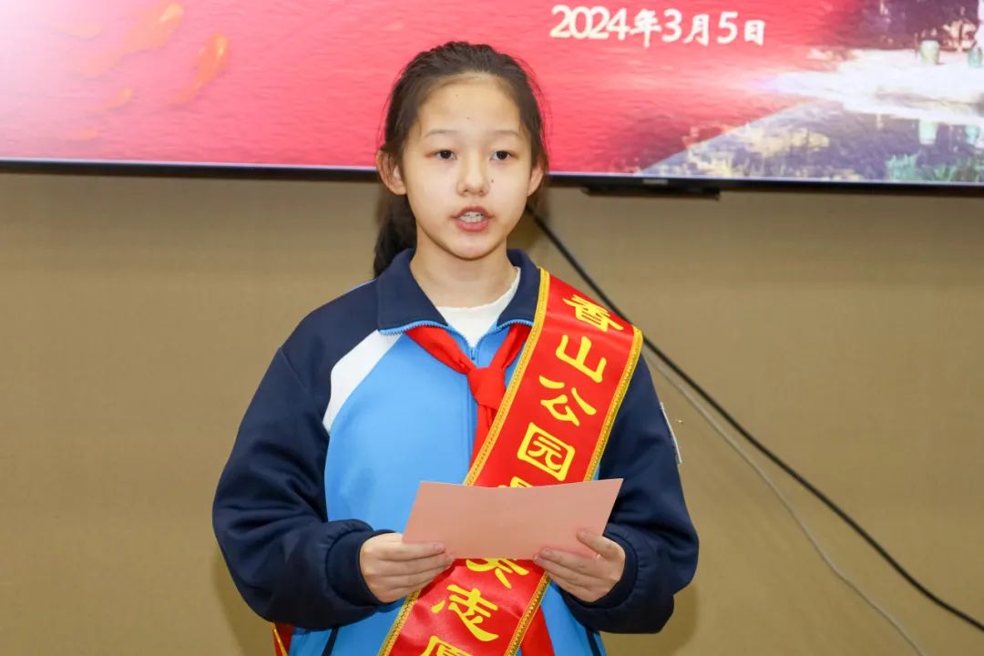 由公园职工、离退休老干部、小学生、首都文明引导员等代表,围绕志愿服务发出倡议,并由党委副书记王金立为他们颁发“香山公园最美志愿者”绶带。