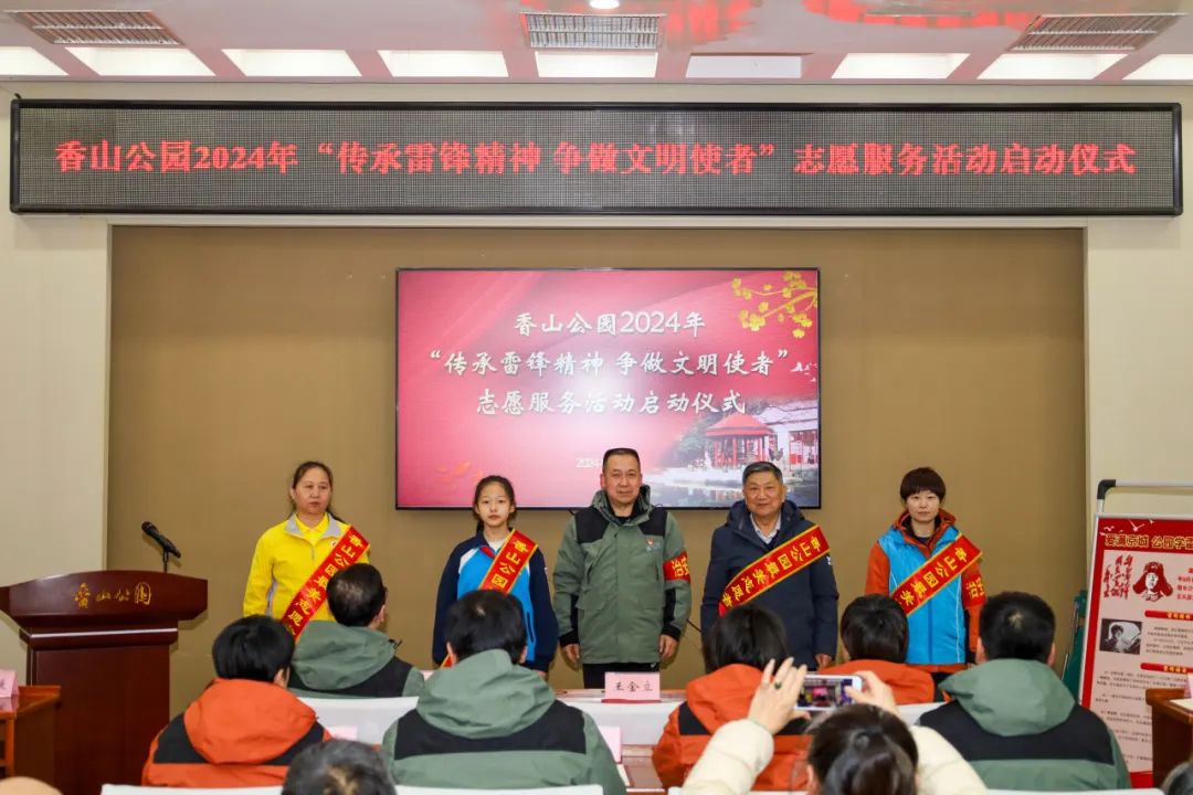3月5日上午,在香山公园,一场主题为“传承雷锋精神 争做文明使者”的学雷锋志愿服务活动启动仪式正在进行。