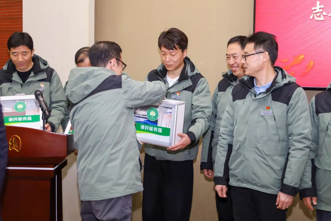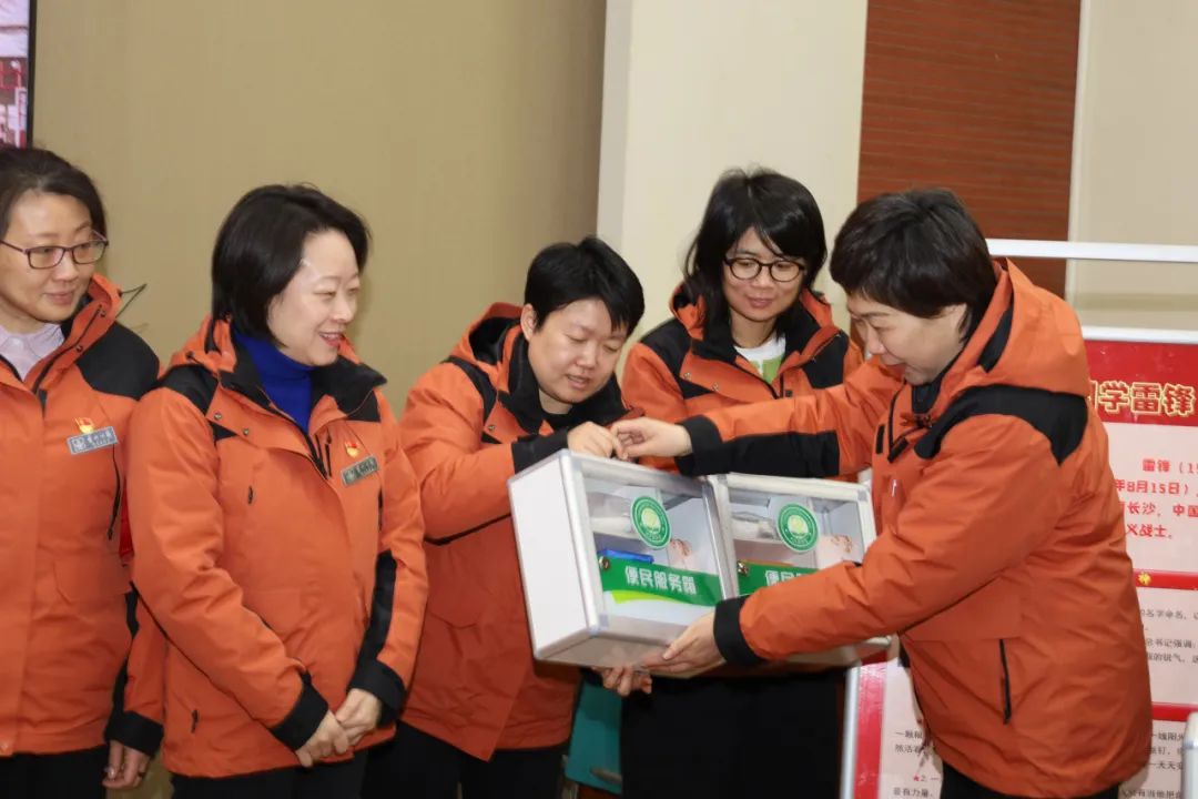 由副园长王延、武巍为各党支部学雷锋志愿服务岗配发便民服务箱。