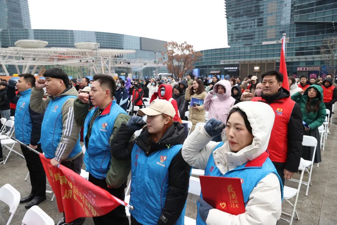 有关负责人发布2024年北京经开区志愿服务项目品牌创建活动预告和2024年北京经开区新时代文明实践工作月度主题。在首都学雷锋“5个100”最美志愿者李悦的带领下,现场全体志愿者重温了志愿者誓词。