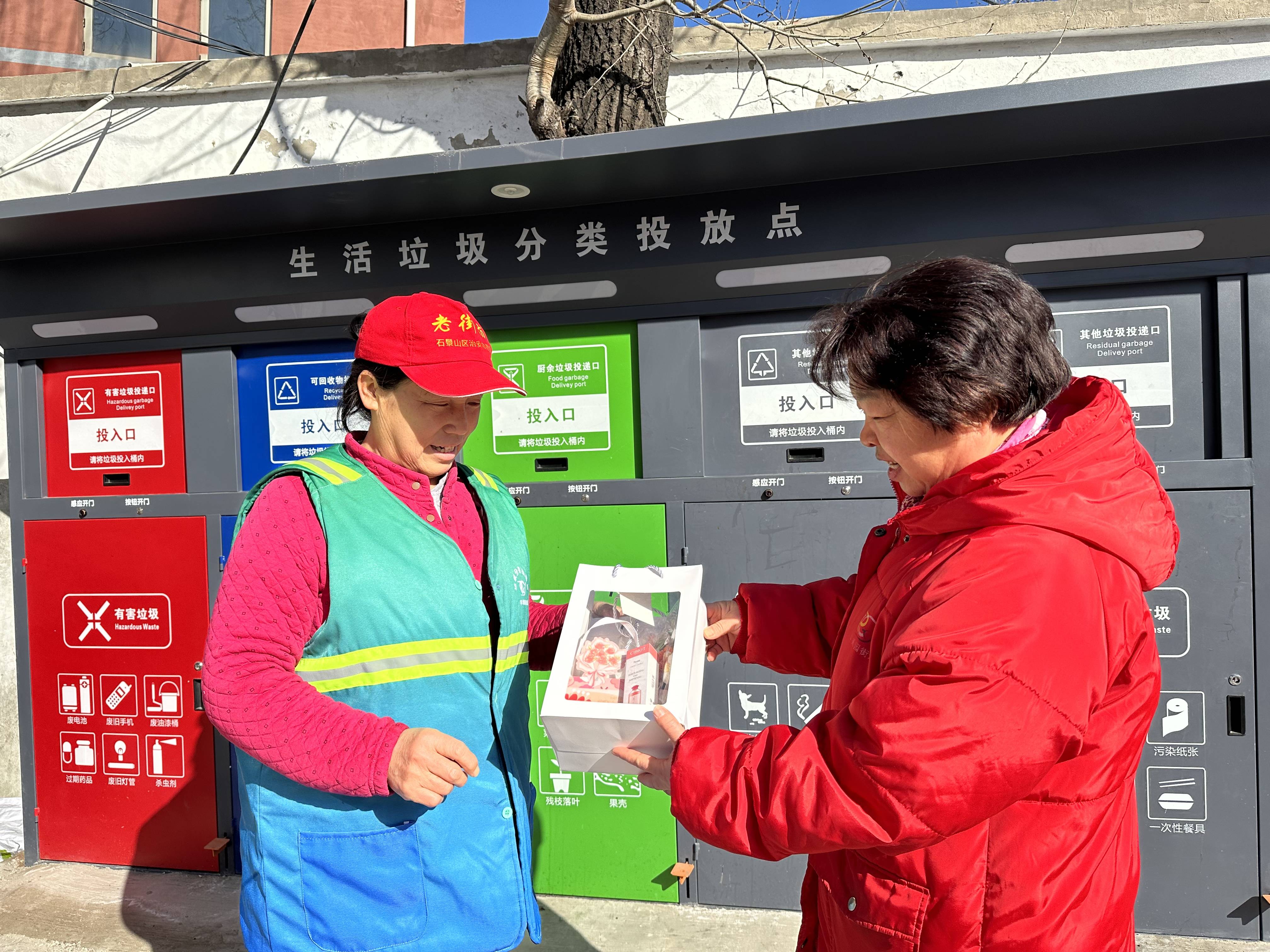 收到花朵后,现场每个人脸上都洋溢起灿烂的笑容。手捧花束礼袋的杨老师说:“我当了一辈子老师,爱学生、爱讲台,始终无悔自己教书育人的选择。感谢社区的这束花,让我为自己的职业感到光荣。”垃圾分类投放站前,一位守桶志愿者手捧钩织花礼袋,激动地说:“作为志愿者,我们愿意用自己的劳动,让垃圾分类更科学,让我们的环境更美。”