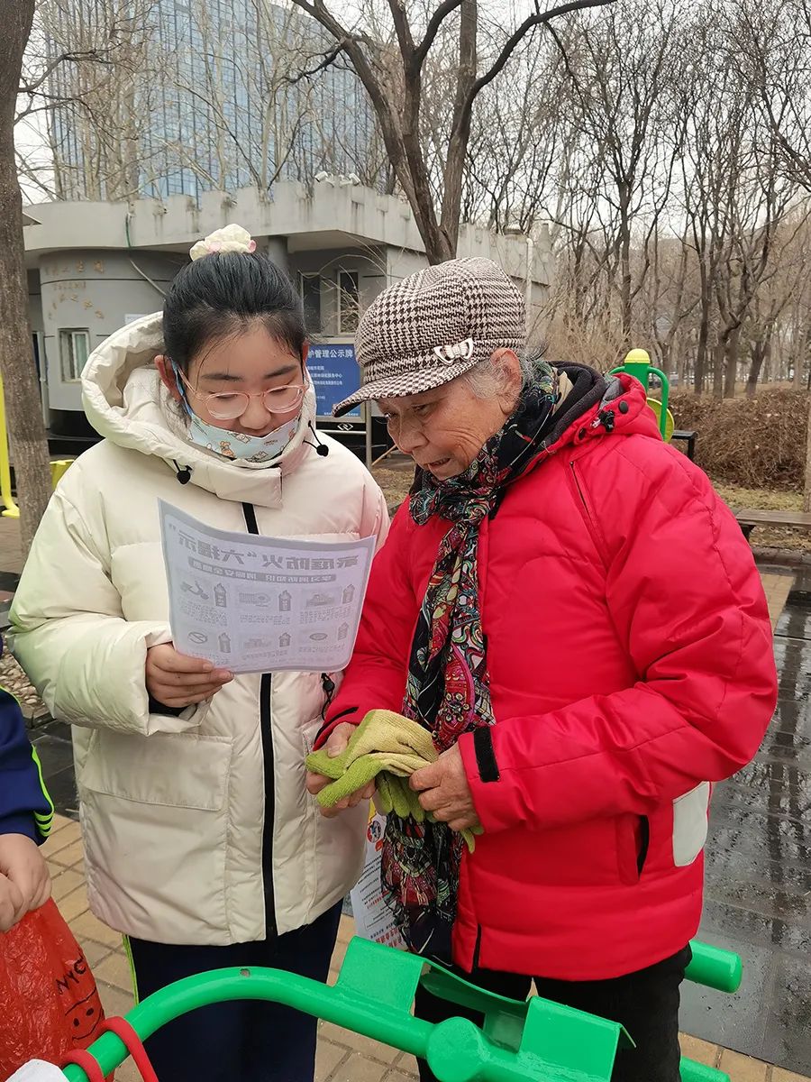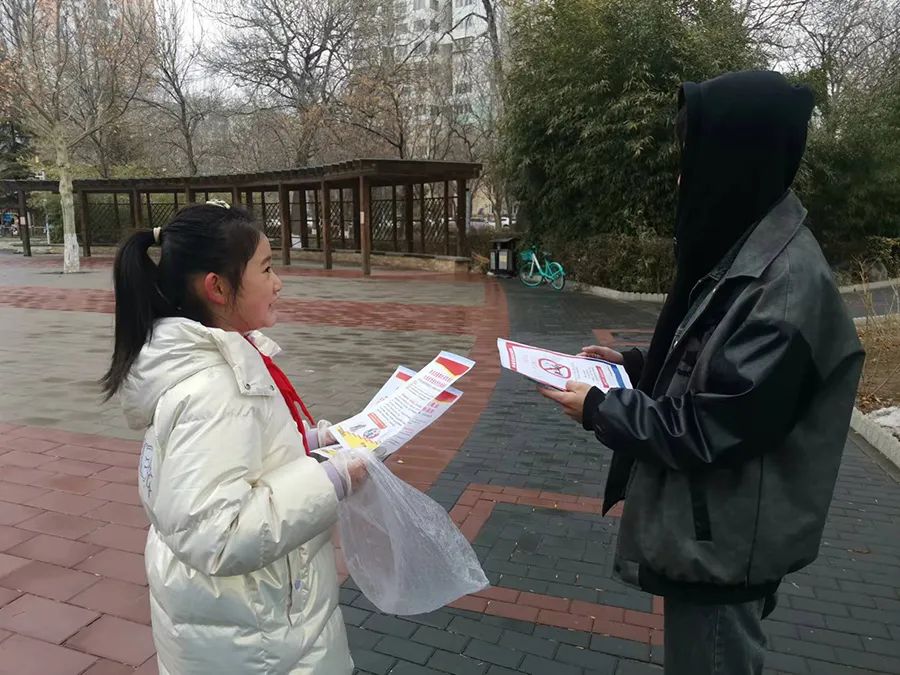 四至六年级的队员也不甘示弱,他们走出校园,走进社区、街心公园。有的清理白色垃圾,有的铲除小广告,还有的积极进行着文明宣传,告诫居民朋友安全用电、注意防火、不把电动车推进居民楼,不在家给电动自行车充电等,得到了居民的积极回应。
