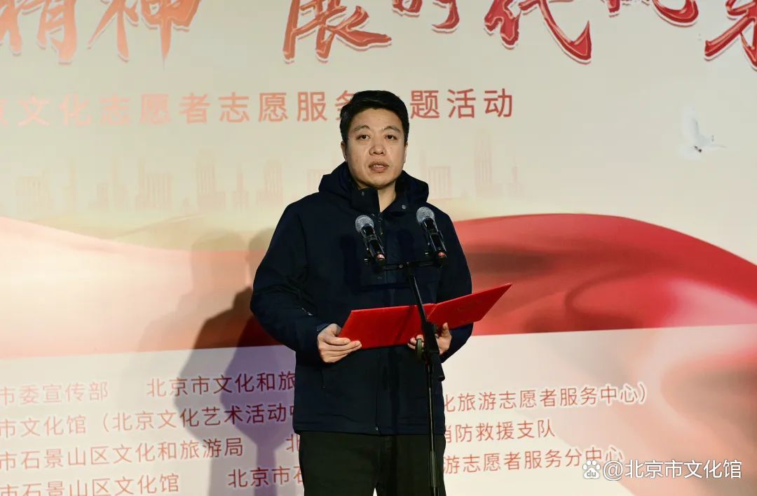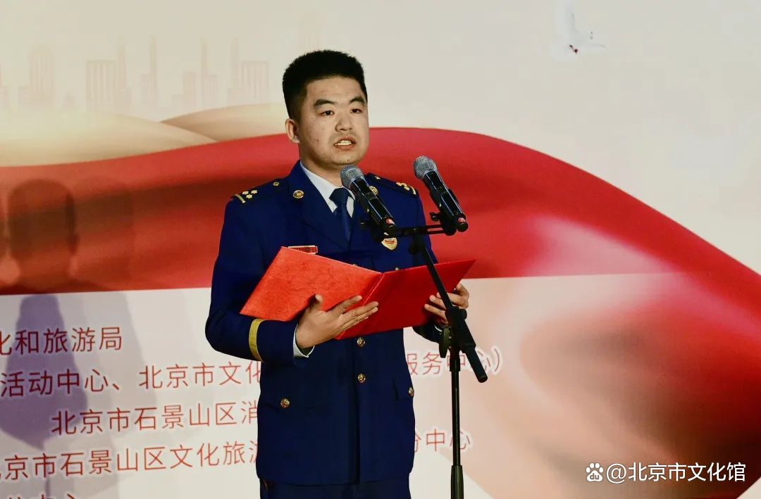 活动现场,北京市文化馆党总支书记、馆长王维波、石景山区消防救援支队支队长高友国分别致辞、石景山区文化志愿者代表进行志愿服务发言、消防员代表宣读“消防安全倡议书”。北京市文化和旅游局二级巡视员常林同志宣布“学雷锋精神 展时代风采”北京文化志愿者主题活动启动, 北京市石景山区人民政府副区长尹圆、北京市消防救援总队政治部一级督导员刘松一同为北京市文化旅游志愿者服务点进行揭牌仪式。北京市文化馆、北京市文化旅游志愿者、石景山区文化和旅游局、石景山区消防救援支队、石景山区文化馆等相关单位、各区文化旅游志愿者服务分中心的志愿者代表、北方工业大学大学生志愿者、消防员、广大社区居民共计200余人参加活动。