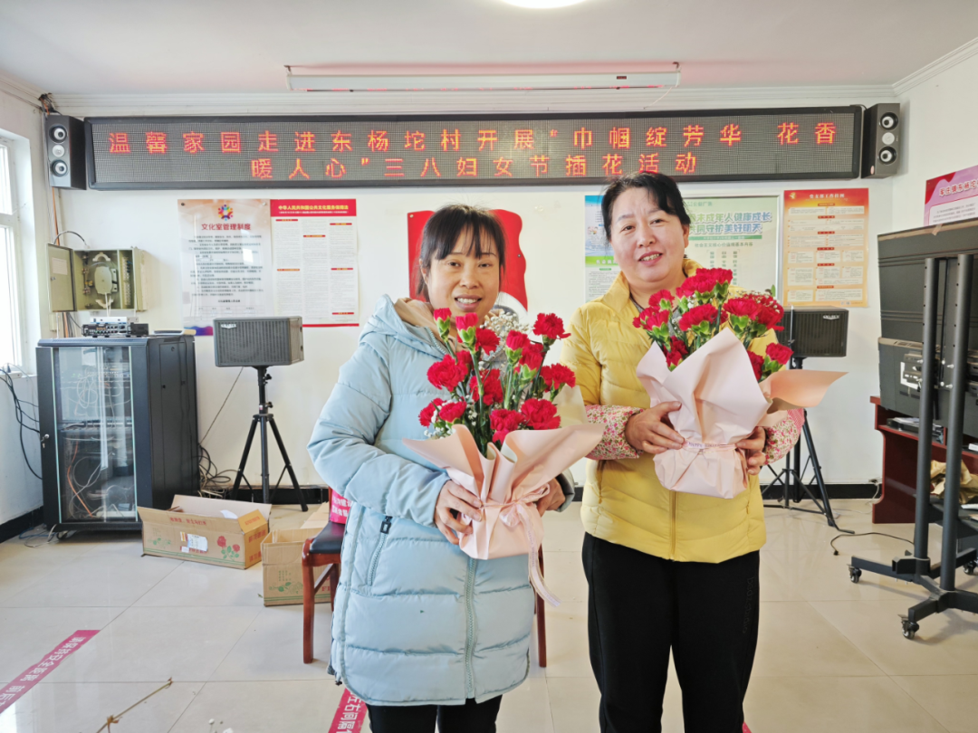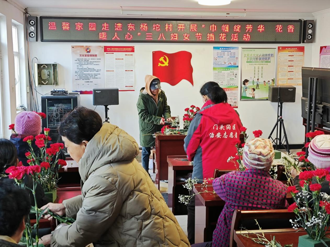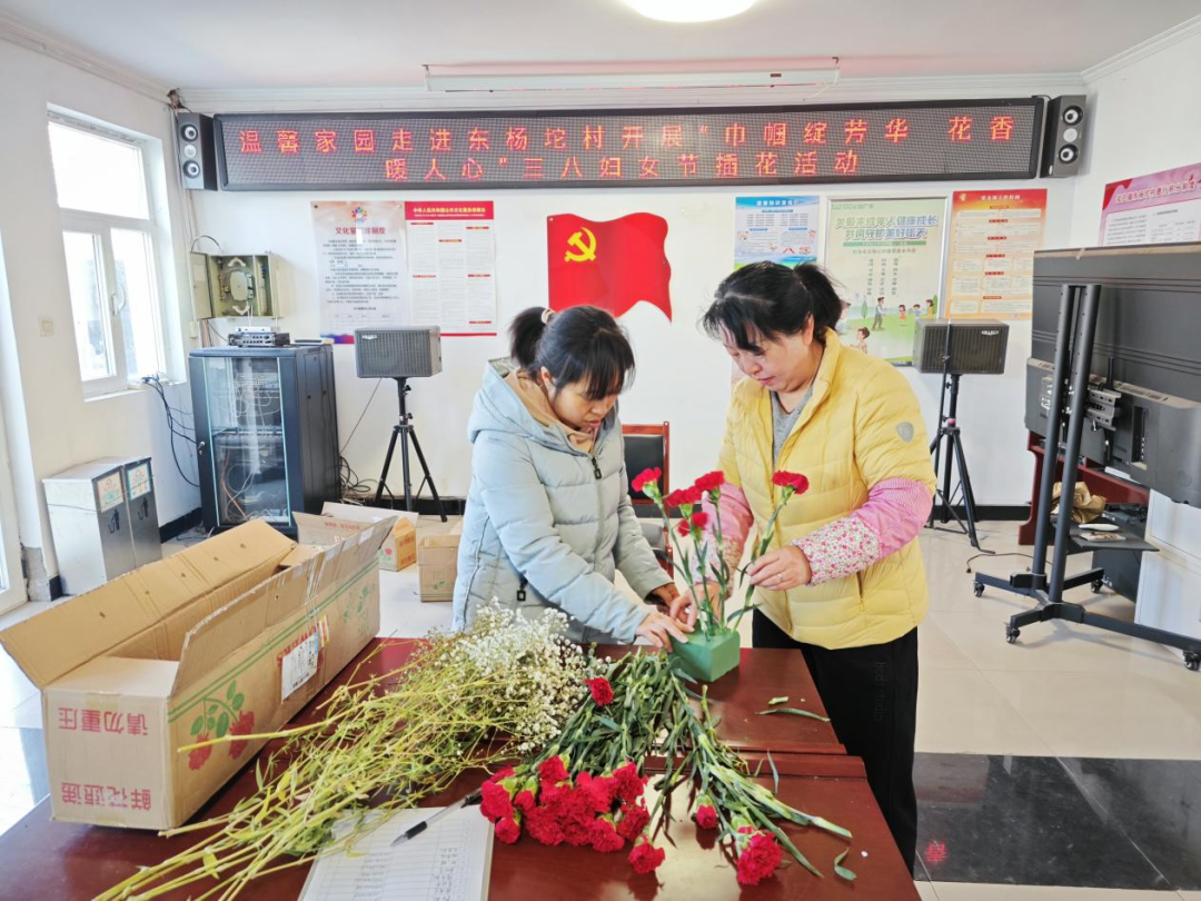 春风有信,花开有期,最美的花赠最美的你。在“三八”国际妇女节来临之际,为丰富辖区女性残疾人朋友的精神文化生活,3月7日上午,温馨家园走进东杨坨村组织开展了“巾帼展芳华 花香暖人心”三八妇女节插花活动,邀请镇残联协管员何洪芬及村里部分女性残疾人朋友来一场春的约会。