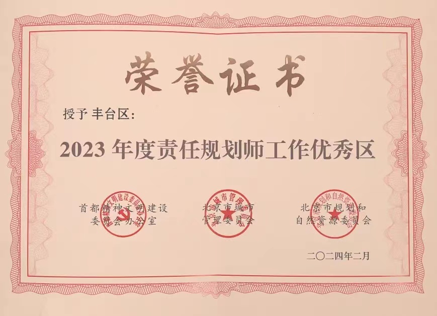 近日,丰台区被评为2023年度责任规划师工作优秀区。共有12个单元责师(团队)及丰台区统筹团队获得2023年度北京市优秀责任规划师团队称号。
