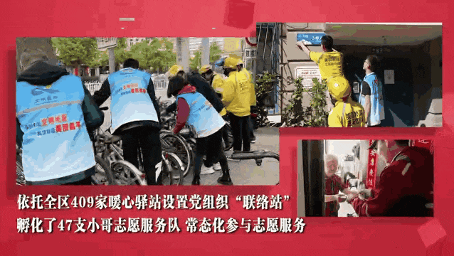 目前,全区409家暖心驿站设置了党组织“联络站”,孵化了47支小哥志愿服务队,常态化参与志愿服务。
