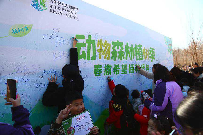 据了解,济南野生动物世界的植树节活动一直持续至3月24日,游客朋友想要在动物世界种下一棵属于自己的小树苗,可以通过关注景区官方公众号,后台咨询留言即可领取树苗一棵,免费植树体验,让树苗陪伴小朋友一同成长!另外,团队植树也可以通过联系宁经理:13296343499进行提前预约。
