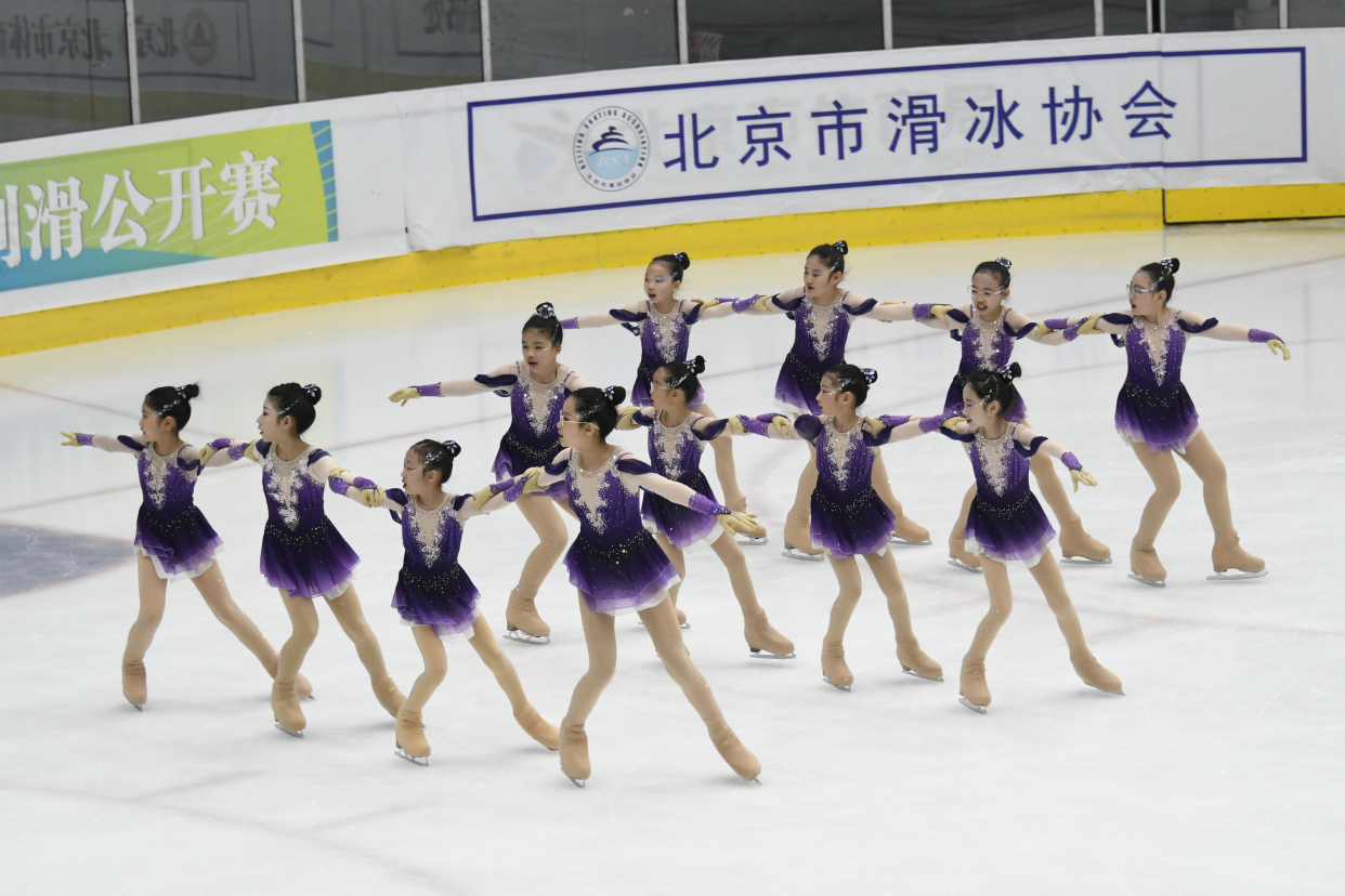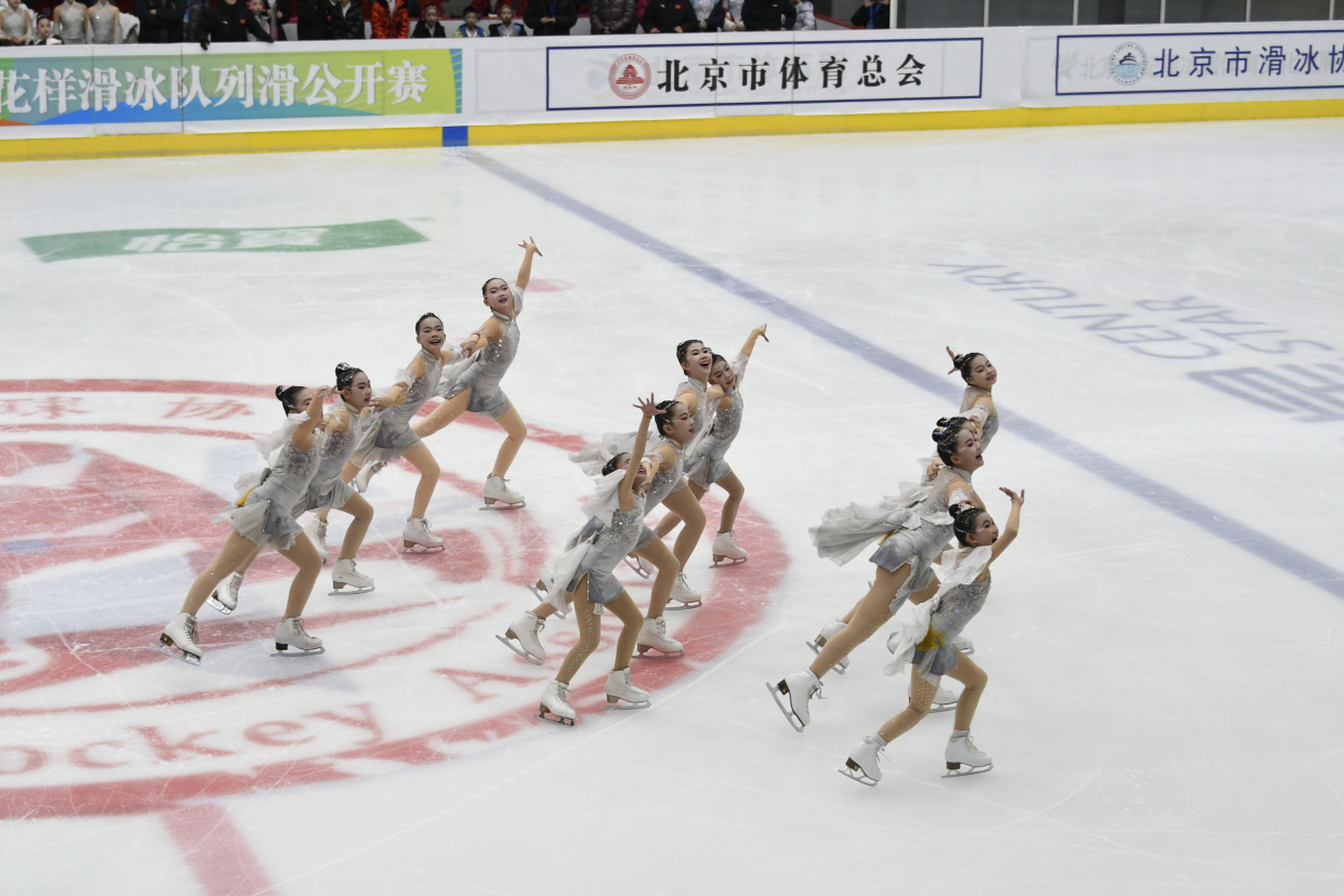 本次比赛分为俱乐部组和学校组两大类别,并针对不同年龄段进行了细致的分组。学校组汇聚了来自海淀区中关村第三小学、北京亦庄实验小学、陈经纶中学嘉铭分校、北京景山学校远洋分校、京源学校等8支优秀队伍。而俱乐部组则有来自北京浩泰冰尚体育发展有限公司、北京市石景山区启迪璀璨滑冰俱乐部和全明星滑冰俱乐部体育公园店等5支队伍参赛。随着音乐的响起,各支队伍在冰面上翩翩起舞,队形变换自如。运动员们如同绽放的鲜花,在冰面上展现出队列滑的独特魅力和无限活力。