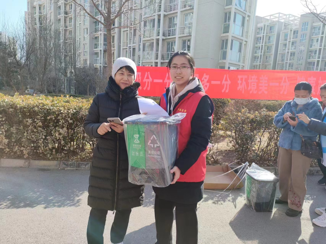 宣讲后,工作人员为在场居民发放了家用垃圾分类垃圾桶,借此提高居民垃圾分类的主动性和积极性。