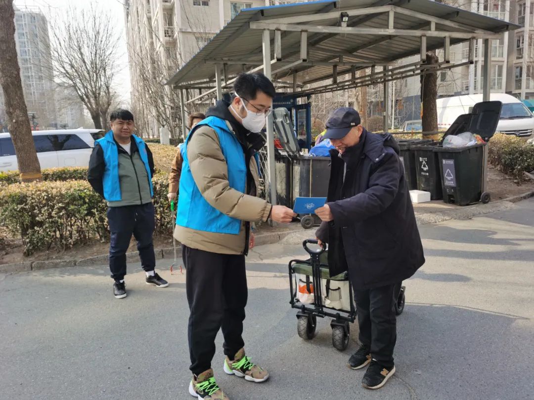 活动过程中大家分工明确,紧密配合,共同开展卫生清理工作。志愿者们有的对单元门内墙面上的小广告进行清理,并用垃圾袋将碎纸进行回收;有的手拎垃圾袋,手持捡拾夹,充分发挥不怕脏,不怕累的精神,弯腰在小区内认真捡拾碎纸屑、烟头、塑料袋、生活垃圾等;有的向过往居民发放垃圾分类宣传册,引导居民养成对各类垃圾自觉分、主动分、持久分的好习惯。