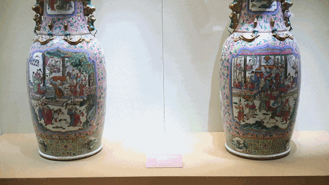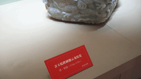 展览现场,由一整块玉料制成的青玉乾隆御题云龙纹瓮格外令人瞩目。玉翁外壁浮雕海水云龙,扬爪腾身,出没于惊涛骇浪之中,动感极强,龙纹随玉料器型而雕,纹饰繁密,雕工精细,再加之巨大的器型,使得龙纹栩栩如生。