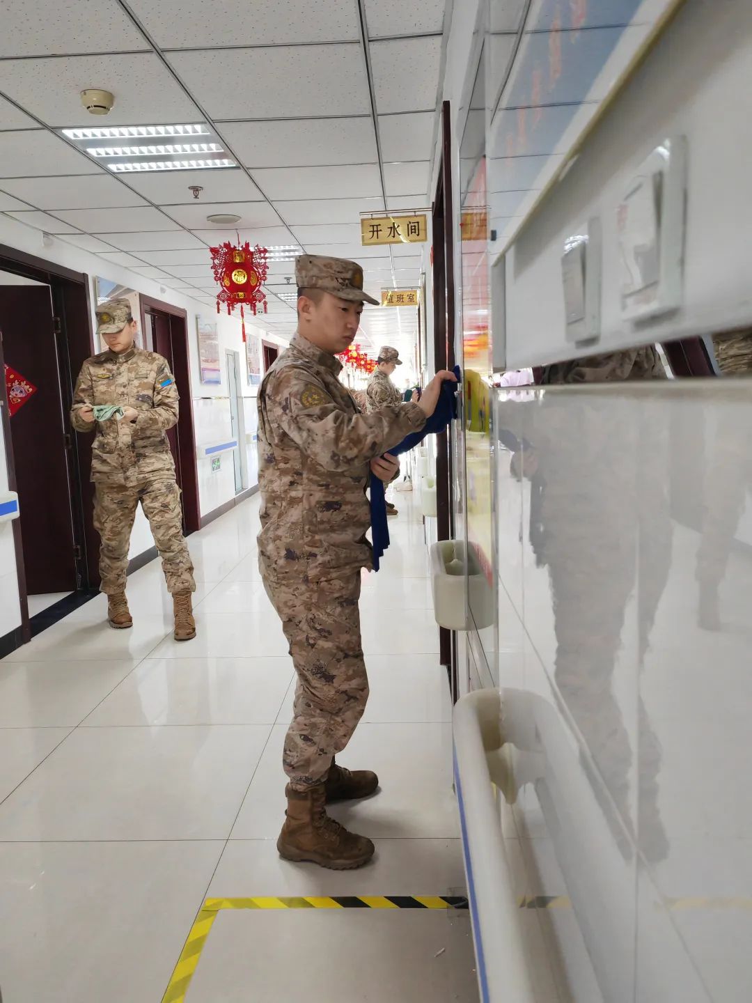 某部队官兵们走进怀柔区光荣院开展“赓续雷锋精神,情暖革命功臣”志愿服务活动。他们细心地打扫老功臣的起居室、活动室、公共区域环境,并为他们测血压,仔细询问他们的身体状况。
