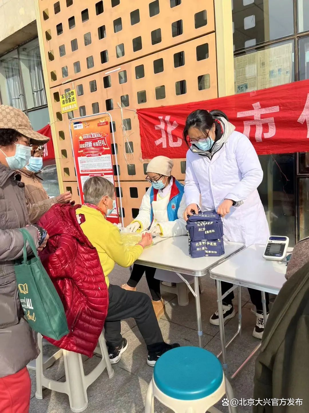 义诊服务中,仁和医院医务人员现场为老人测血压、测血糖、检查口腔和耳道问题,并结合居民的身体情况,指导居民正确认识自己的疾病,提醒居民在日常生活中要养成良好的生活方式和生活习惯。