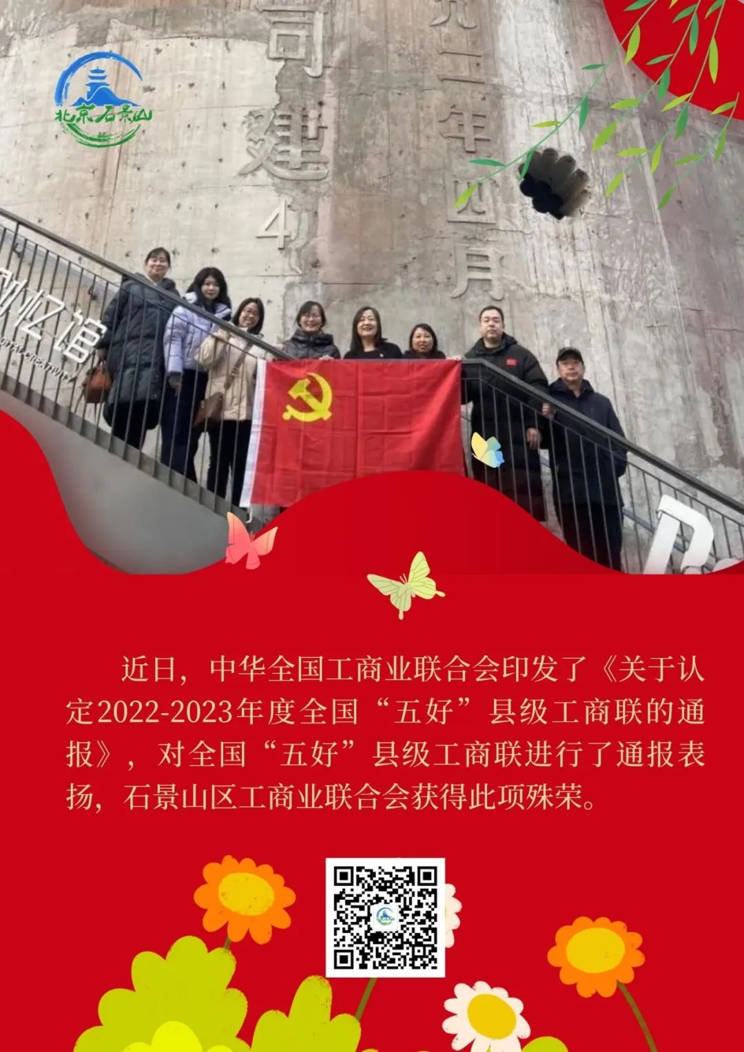 近日,中华全国工商业联合会印发了《关于认定2022-2023年度全国“五好”县级工商联的通报》(全联发[2024]2号),对全国“五好”县级工商联进行了通报表扬,石景山区工商业联合会获得此项殊荣。