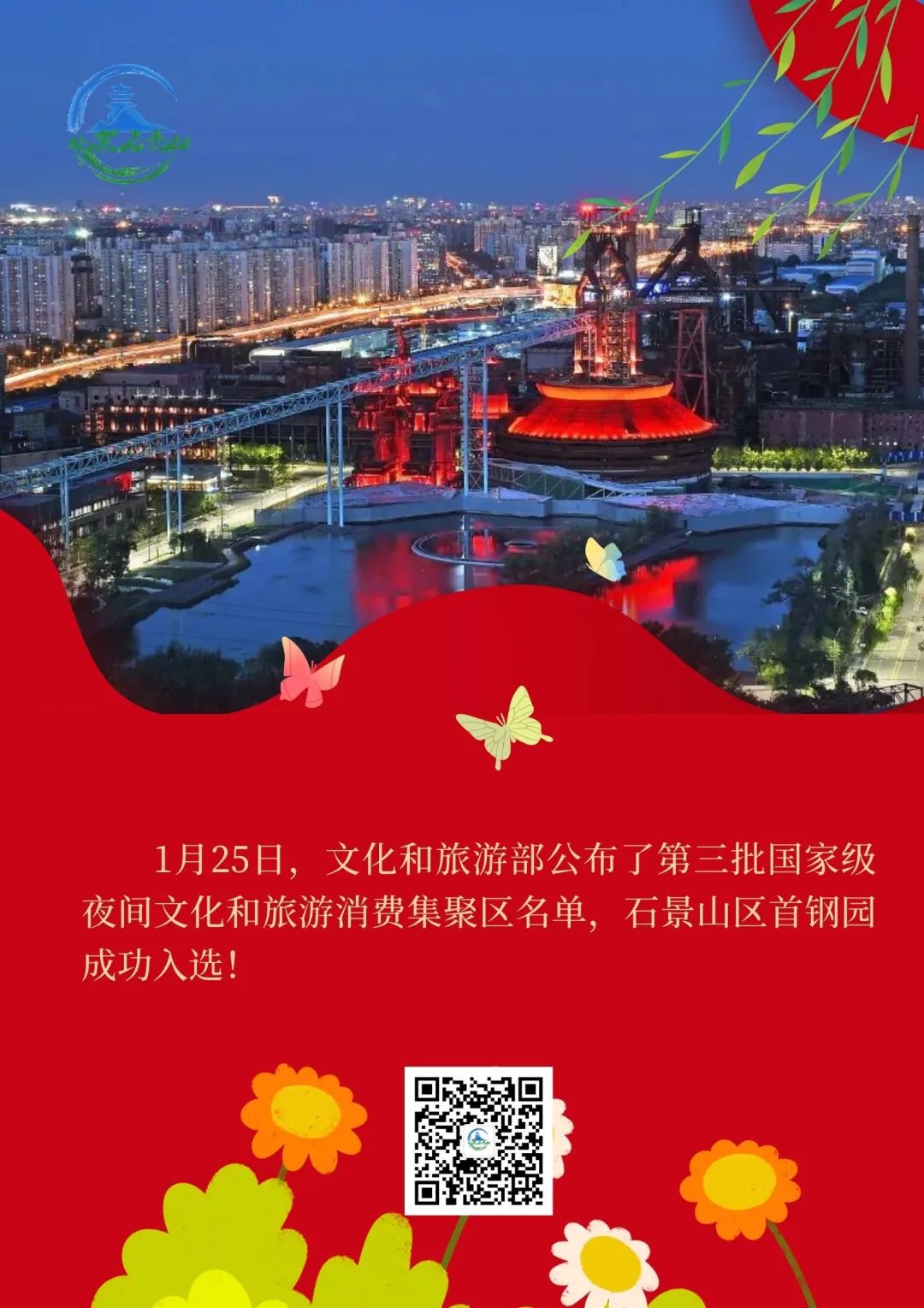 1月25日,文化和旅游部公布了第三批国家级夜间文化和旅游消费集聚区名单,北京市共3处,石景山区首钢园成功入选!截至目前,首钢园已荣获北京市第二批城市微度假目的地、北京网红打卡地、北京市夜京城特色消费地标等多个奖项。