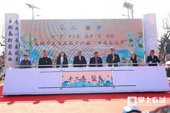 万溪梨花节启动仪式上,2024年呈贡区网络文化节系列活动同步启动。“梨花赏 行万溪”定向活动,朗诵《万溪十二卷》精彩不断。同时,呈贡区还对省、市、区级农业龙头企业进行授牌,给两位梨树王代表颁发牌匾。